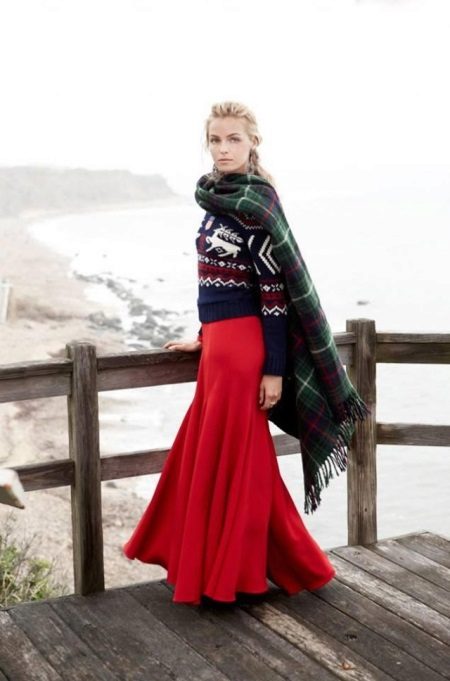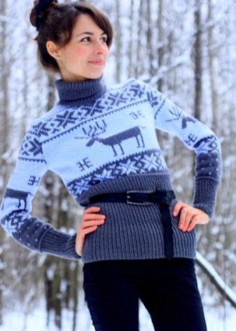 When choosing a sweater with a Norwegian pattern, first of all you need to understand in advance what time of year it will be worn. Wool and warmed for winter, half-woolen and cotton - demi-season. The style also matters, as elongated models to thighs will let through less cold, especially if you have a short jacket.