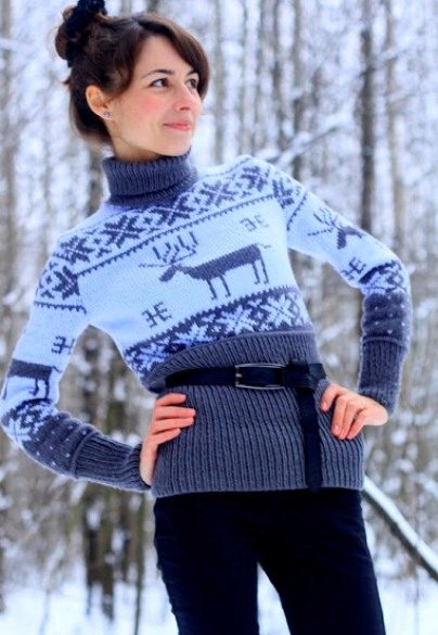 The history of sweaters with deer began with folk crafts of distant northern countries. Knitting was an integral part of the masters of Scandinavia and entered into mass circulation at the end of the XIX century. A characteristic feature of their work was the ornament, knitting method and material.