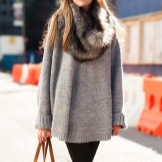 Loose sweaters with fluffy collars will help to embody a romantic and feminine bow. Some models are decorated with fur gates that give the image elegance and elegance.