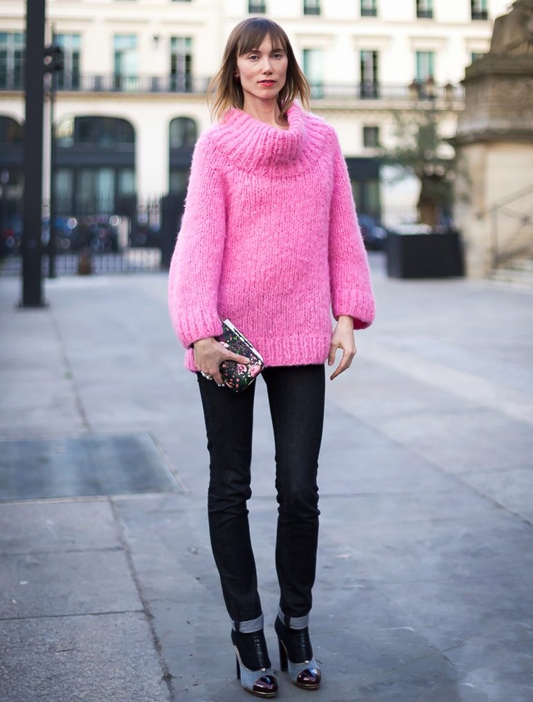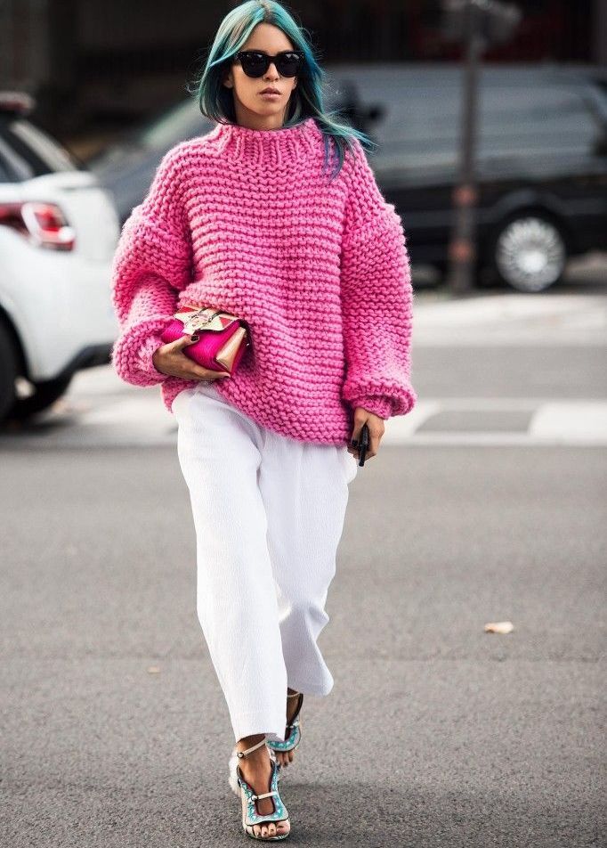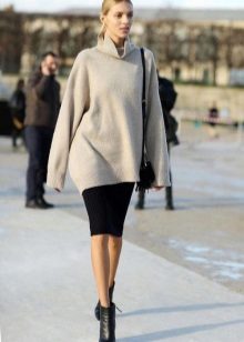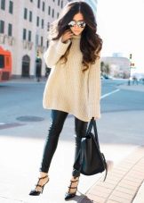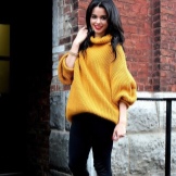 The sweater of free cut in the oversized style today is found in many collections of famous designers. This model is ideal for girls with curvaceous, because it hides all the flaws of the figure.