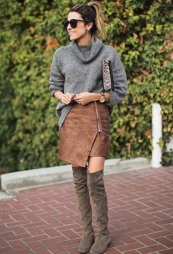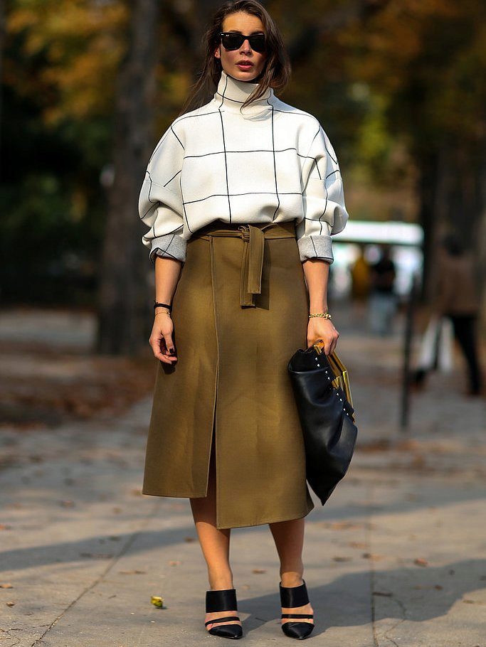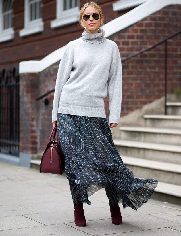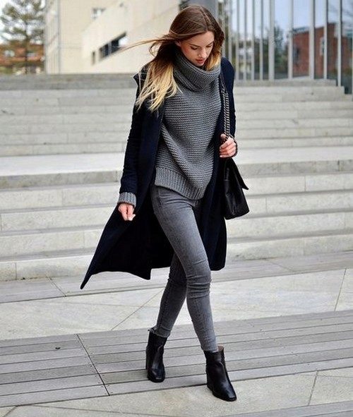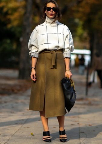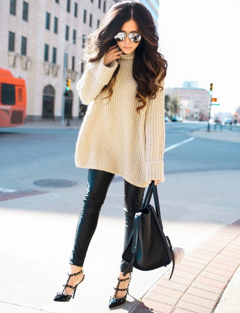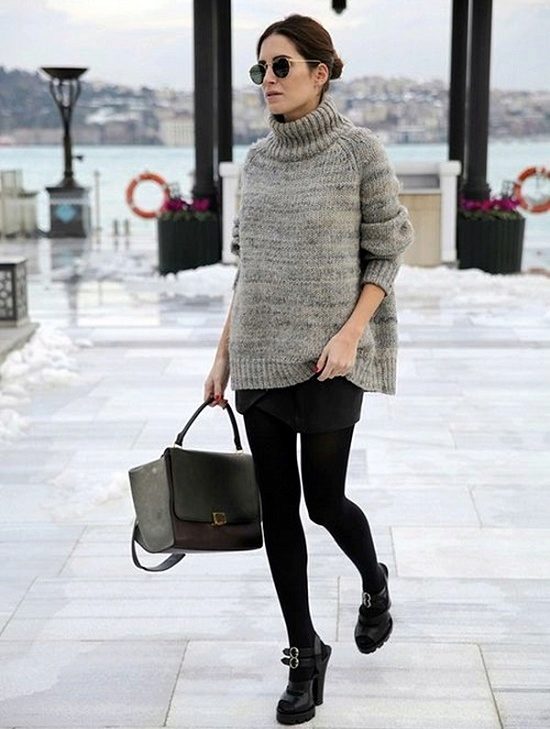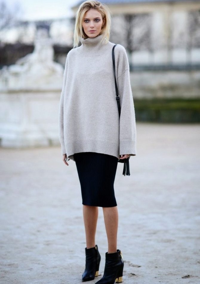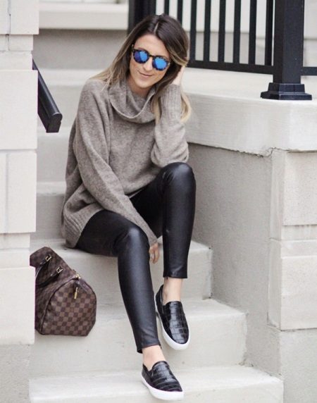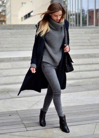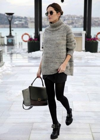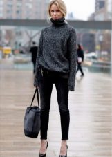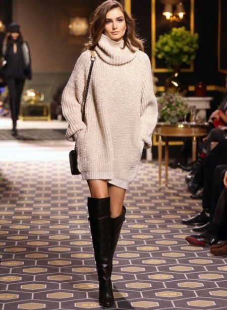 A sweater with a collar with a zipper is different convenience, because at any time it can be undone. It is especially relevant during the off-season. A high neck thigh sweater is a great choice for a sporty style.