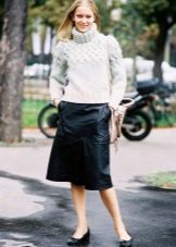 Sweaters with a collar are among the universal elements of the wardrobe, so they can be combined with different things. For example, a warm model with a collar-collar can be combined with trousers of a classic cut, a flared midi length skirt or with a skirt on the floor of wool or boucle fabric.