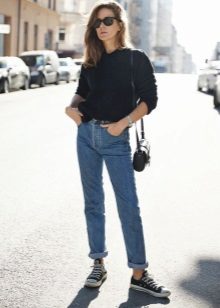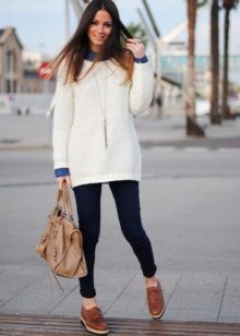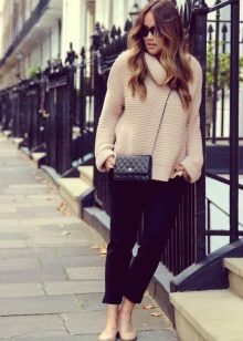 Classic sweaters of a strict style can be worn with straight cut trousers, narrowed skirt or jeans. When choosing shoes should be preferred shoe-shoes on a stable heel.