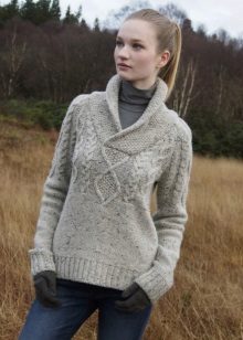 The sweater with a shawl collar is of marine origin. It is well protected from the wind. With this type of collar are usually found thick sweaters, then the collar is beautiful to go to bed.