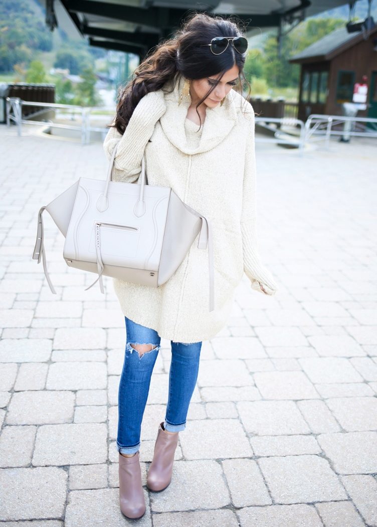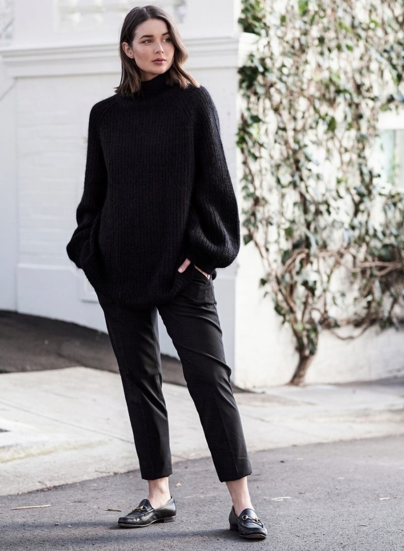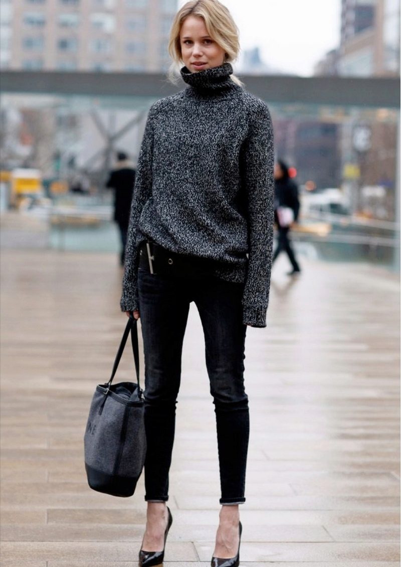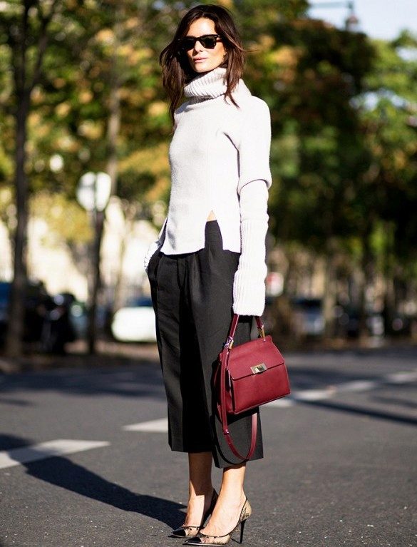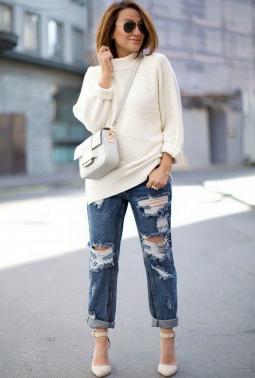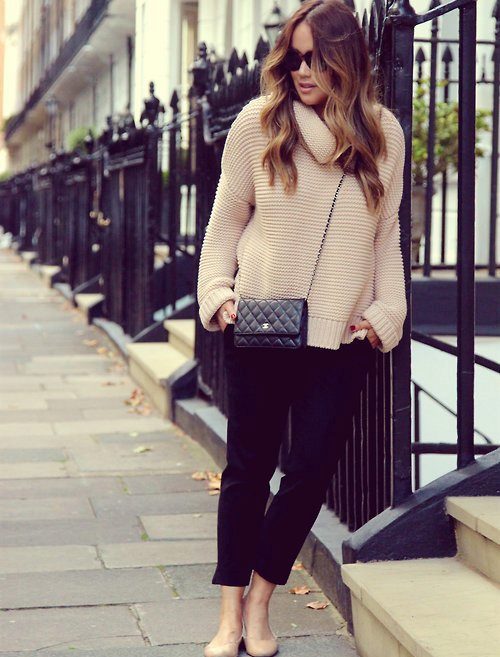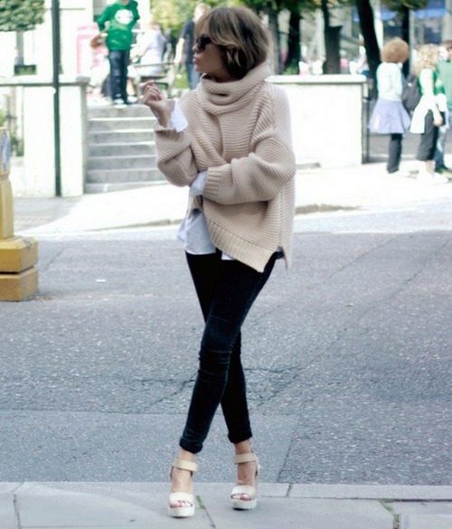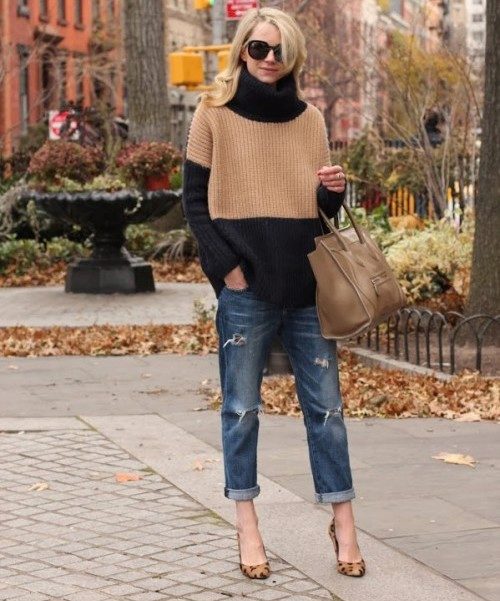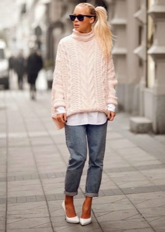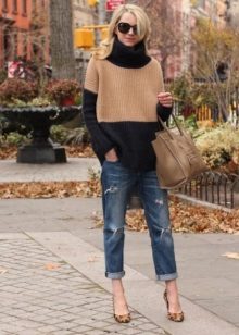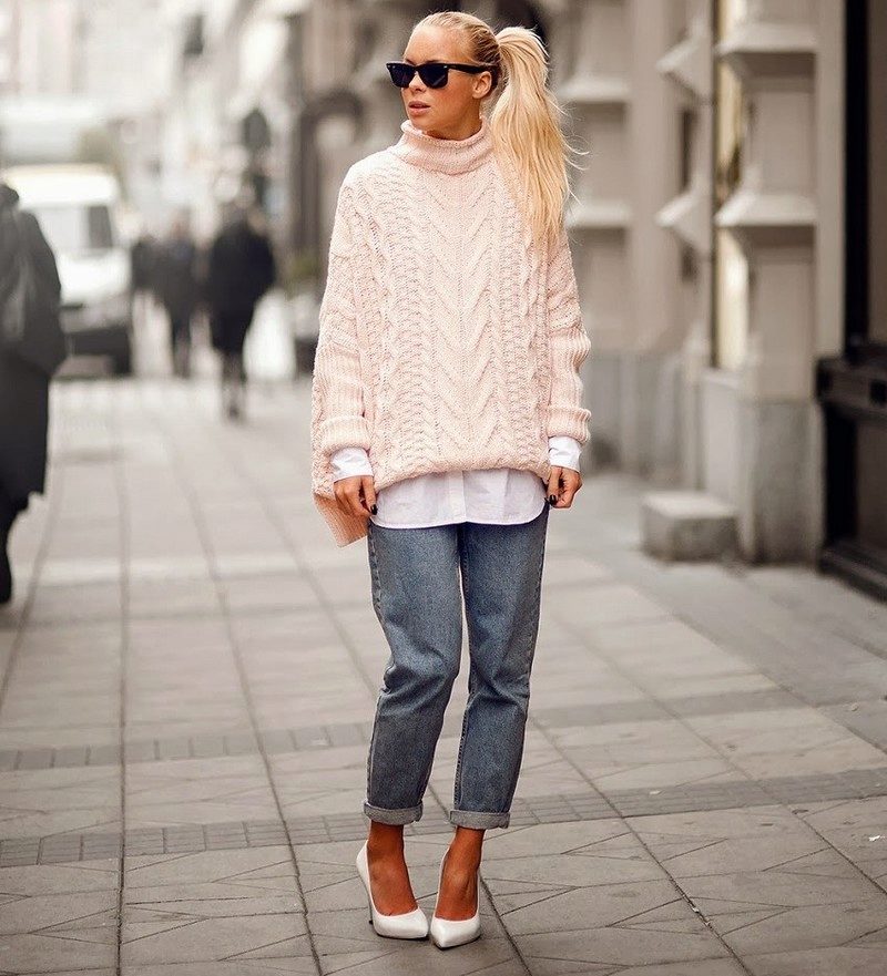 This style is perfect for everyday or solemn images. This sweater can be worn with jeans or trousers. You can add an image with a leather jacket. Models with a collar in the form of a collar are made of wool or cotton in combination with synthetic fibers, which gives the sweater a knockiness, and it fits perfectly on the figure.
