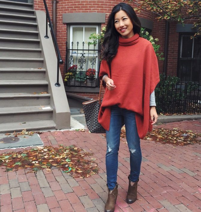 A sweater with a collar allows you to do without a scarf in windy weather, as additional accessories over a sweater give it only bulkiness.