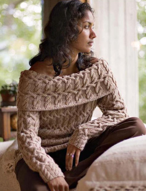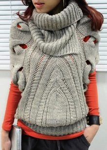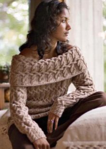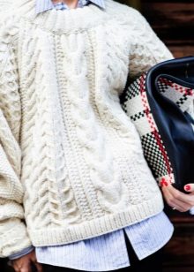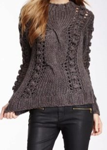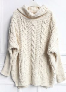 Models of sweaters with braids look very elegant and festive, with a collar - well protects the neck from the cold wind and to some extent replaces the scarf, the short one - perfectly with shirts and blouses. A long sweater can be used as a woolen dress, and a model with a throat allows you to let out a shirt collar, which will give the image a business look.