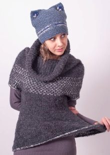 Quite an interesting autumn look is obtained by combining a gray sweater of a free model, with the sleeves rolled up, and a fur boa around the neck imitating the collar of the sweater. This combination of things is visually perceived as a complete product, although it has a somewhat unusual and unusual look.