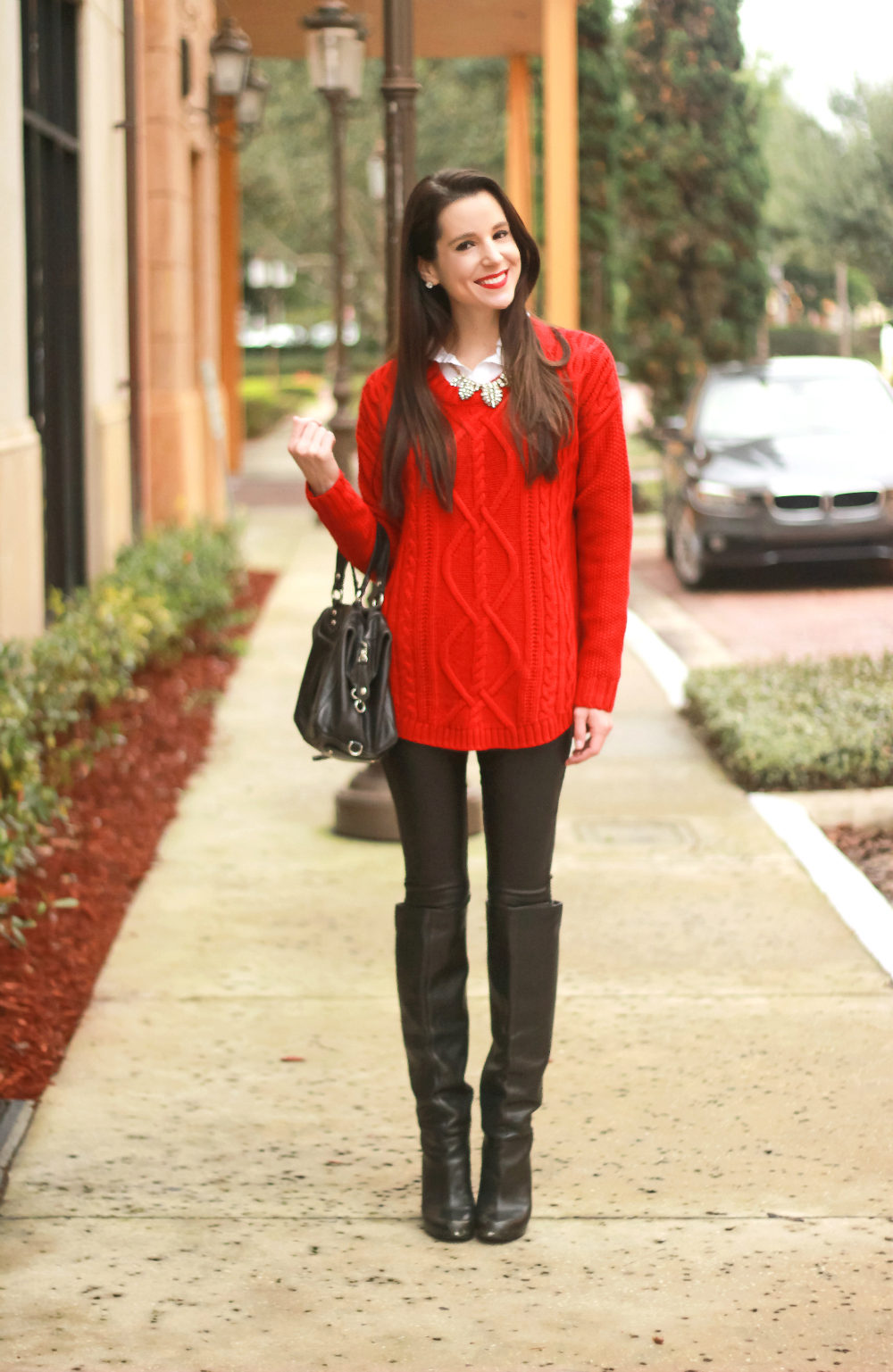 Complementing this image with other things, it is worth being careful and not overloading it, so skinny black pants and suede boots to the knee will work best. In accessories, also, you should not overdo it, so a brown bag, a pair of silver rings and sunglasses are all you need.