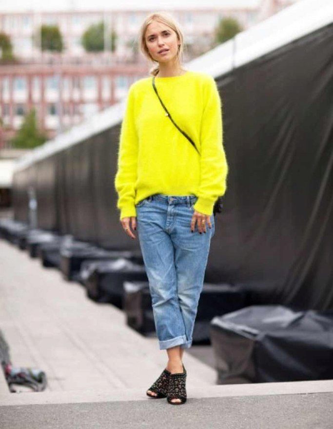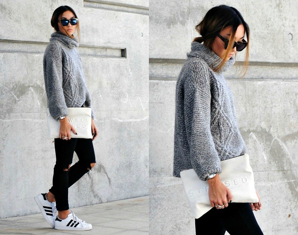With regard to shoes, the same can be noted, since in combination with a sweater any pair of shoes will suit to be combined more with the lower part.