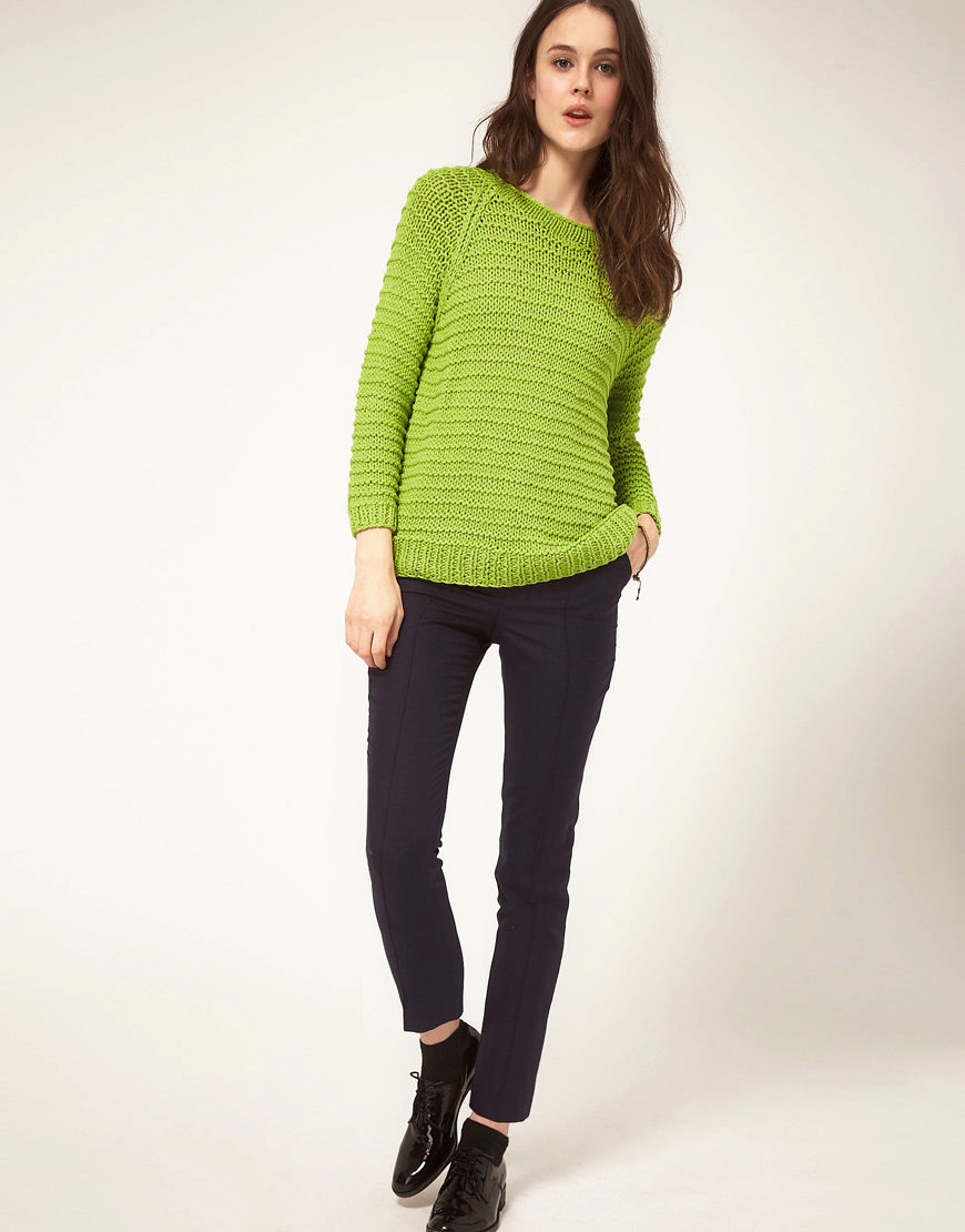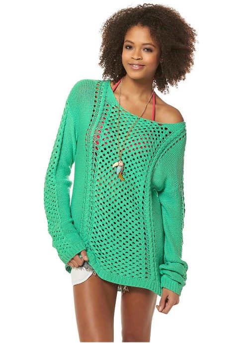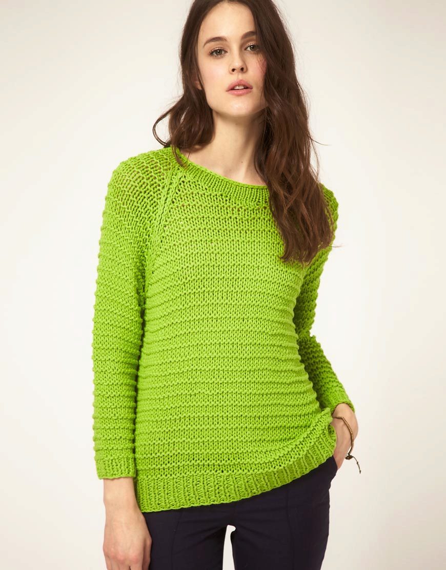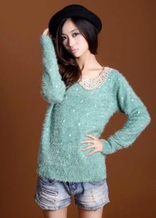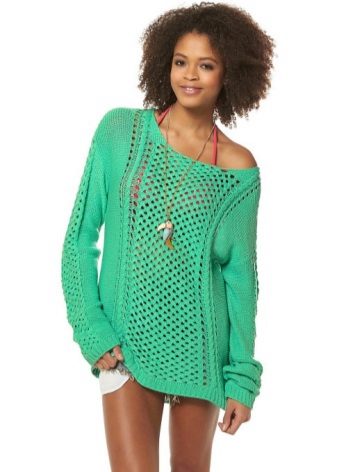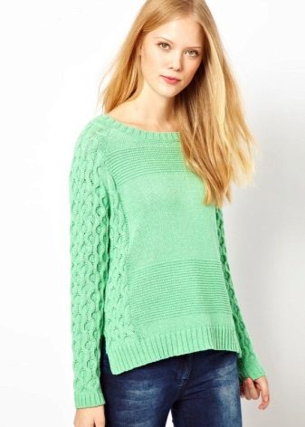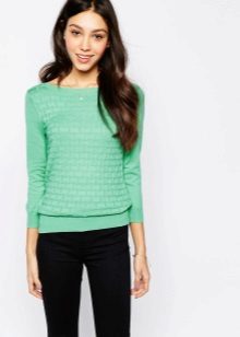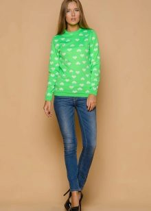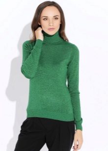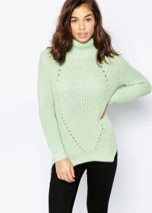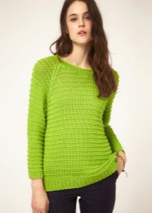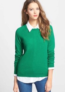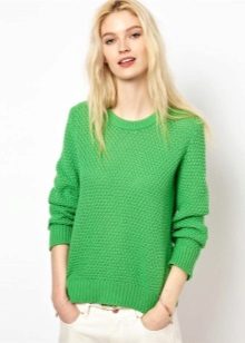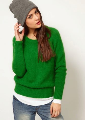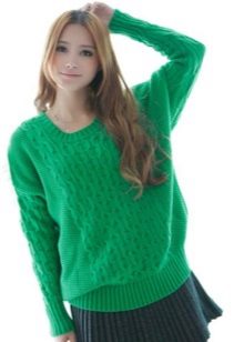 Designers develop the whole collections of clothes of green color. Was no exception and knitted sweater. The classic sweater has a high collar, tight-fitting neck, but recently other types of sweaters are becoming more and more popular - jumpers and pullovers.