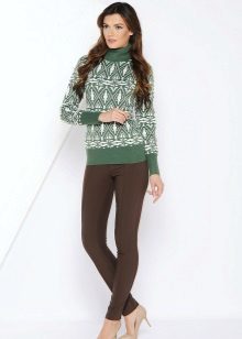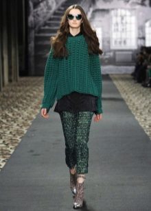 The green color is so deep and saturated that by itself it looks quite self-sufficient. Favorably beat the color will help beautiful embossed knitted pattern of the model. Lovers of unusual patterns, beautiful drawings and unusual prints should pay attention to the most popular ornaments of this season: