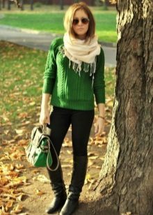 When choosing a suitable pair of trousers, skirt or jeans under a green sweater, it is necessary, first of all, to take into account the compatibility of the colors of clothes. After all, green is quite a capricious color. An improperly chosen shade can ruin the entire effect of a beautifully composed image.