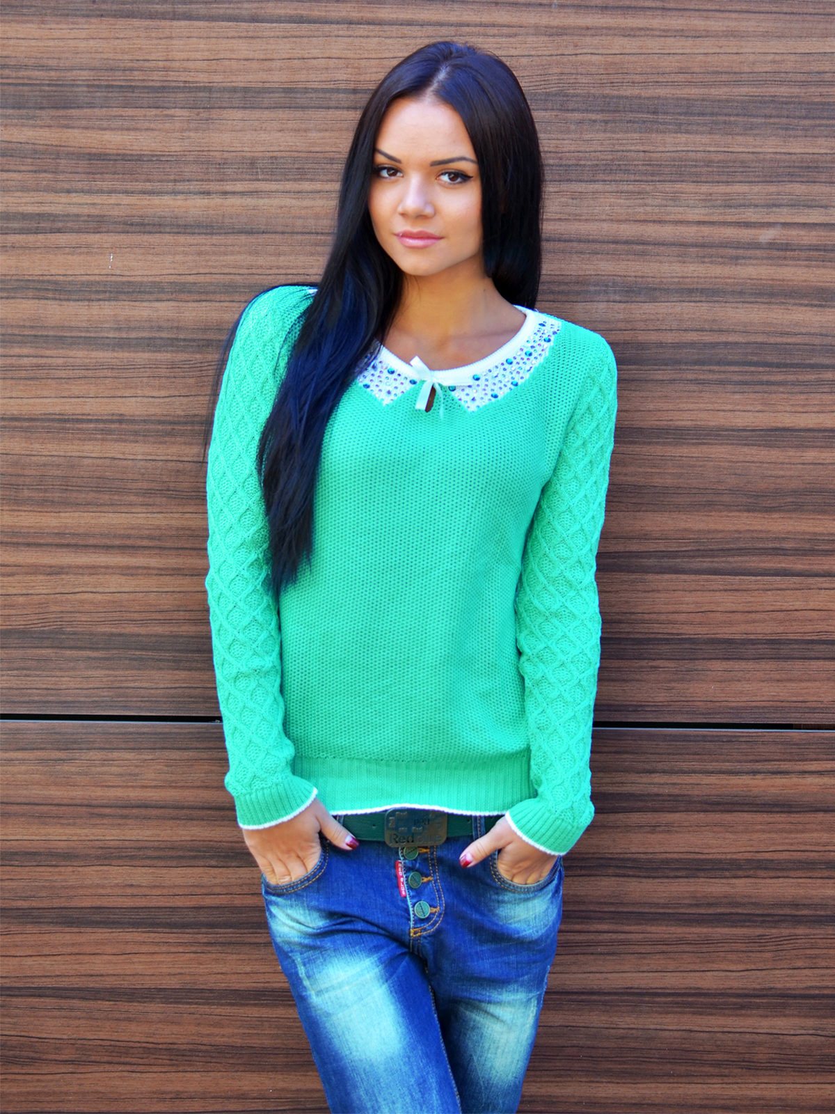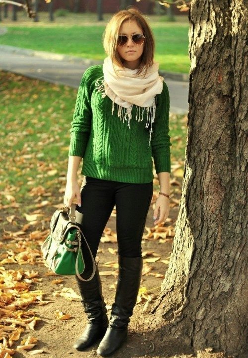 Light green sweater energizes, gives a feeling of lightness and freshness. A deep emerald sweater adds serenity and self-confidence. In addition, it is one of the most fashionable colors in this season!
