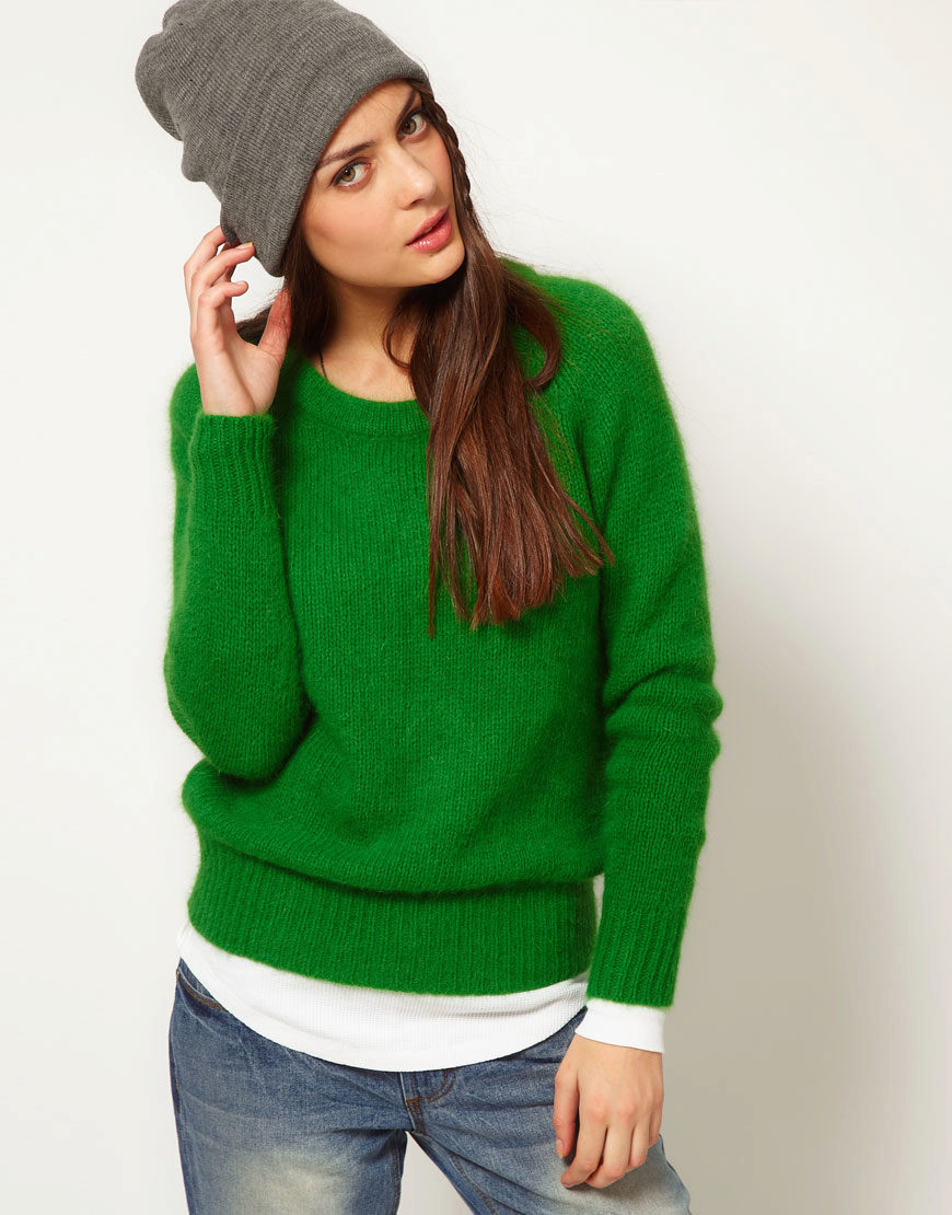 The color range of green has several dozens of very different shades, so every woman can easily choose the tone of a sweater that is individually suitable for her color type.