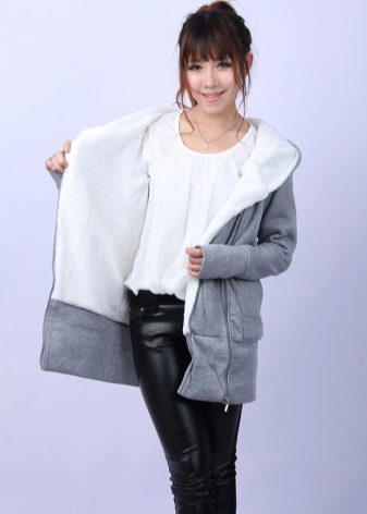 The sweatshirt can also be equipped with a lining and a pile, and can also be made of warm wool fabrics, fleece and plush material.