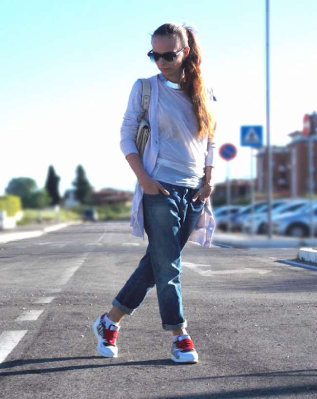 The classic sweatshirt is more combined with jeans, sports pants and leggings, and, accordingly, with sports models of shoes.