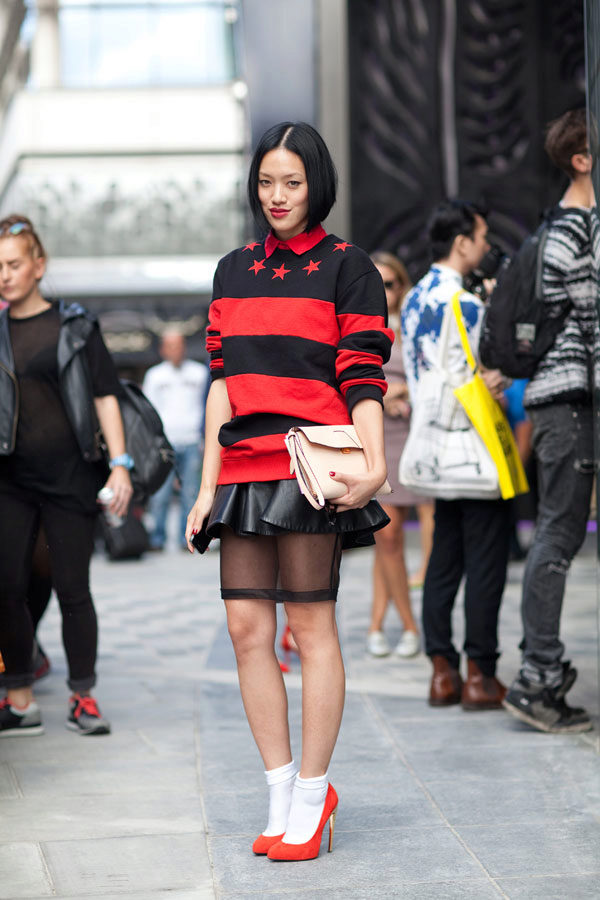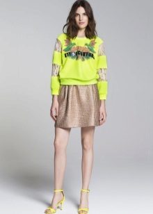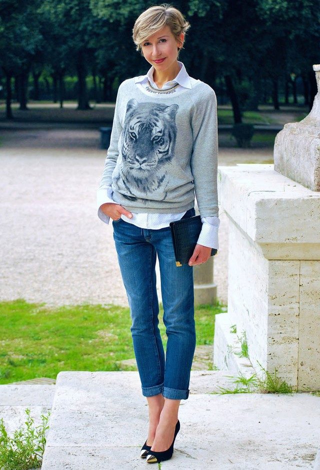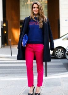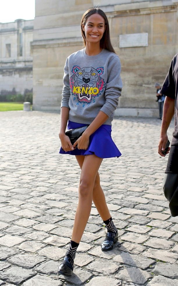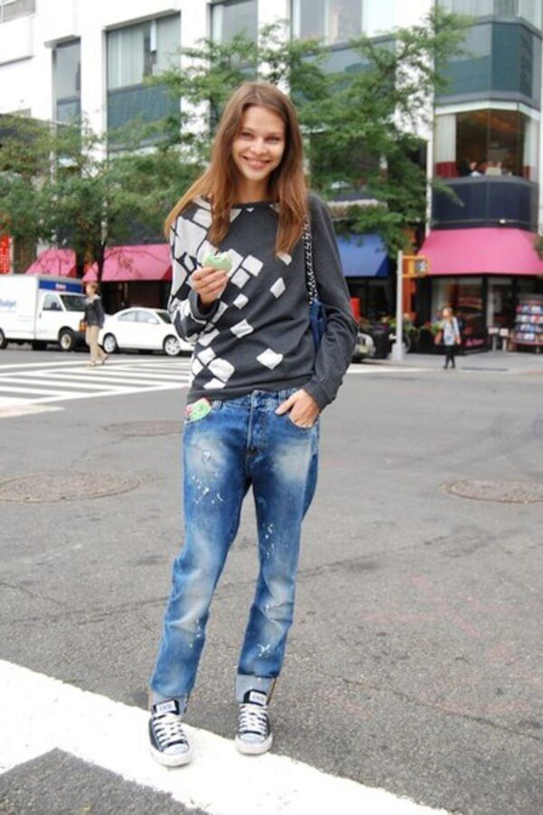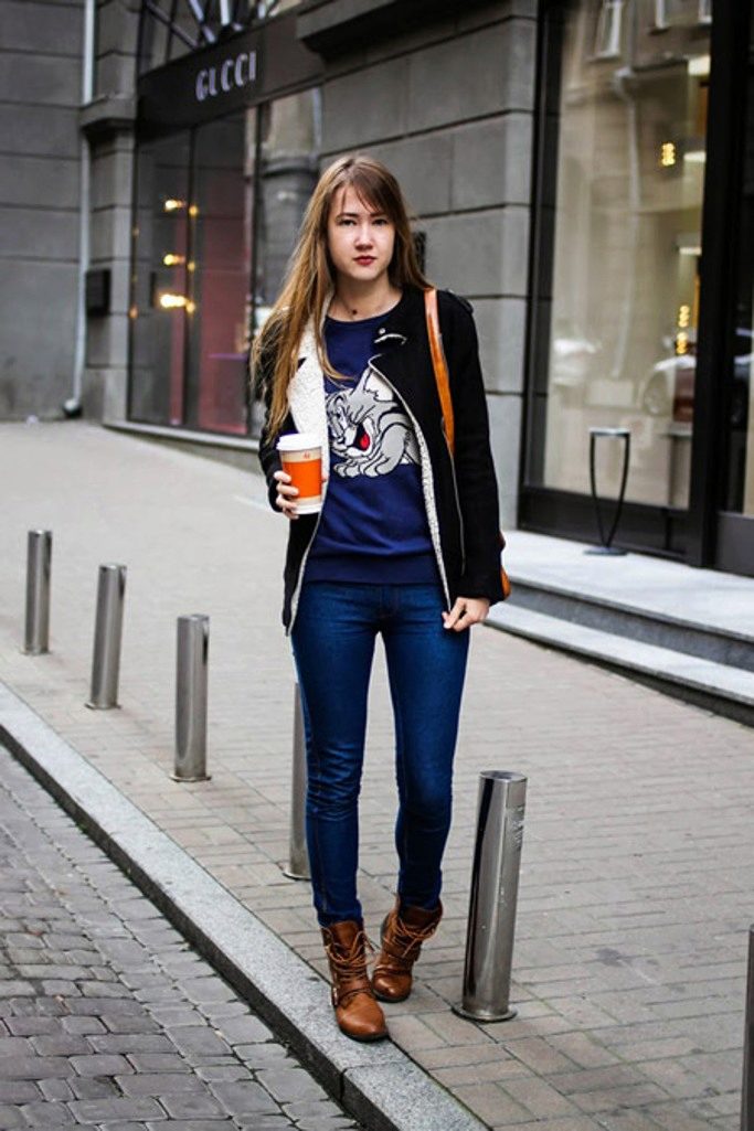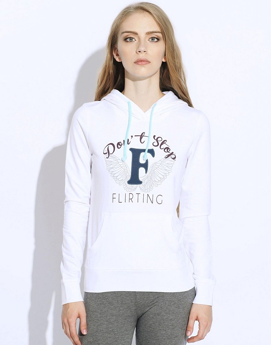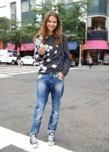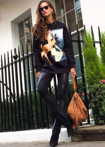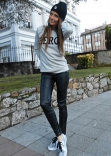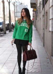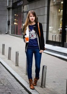 This piece of clothing can be part of both sports and casual wardrobe. He looks great, not only with sweatpants and sneakers, but also with jeans, trousers and skirts of different styles.