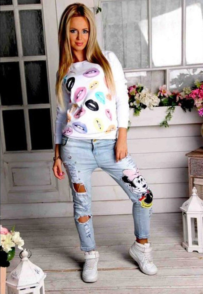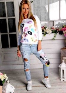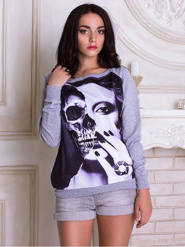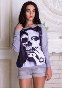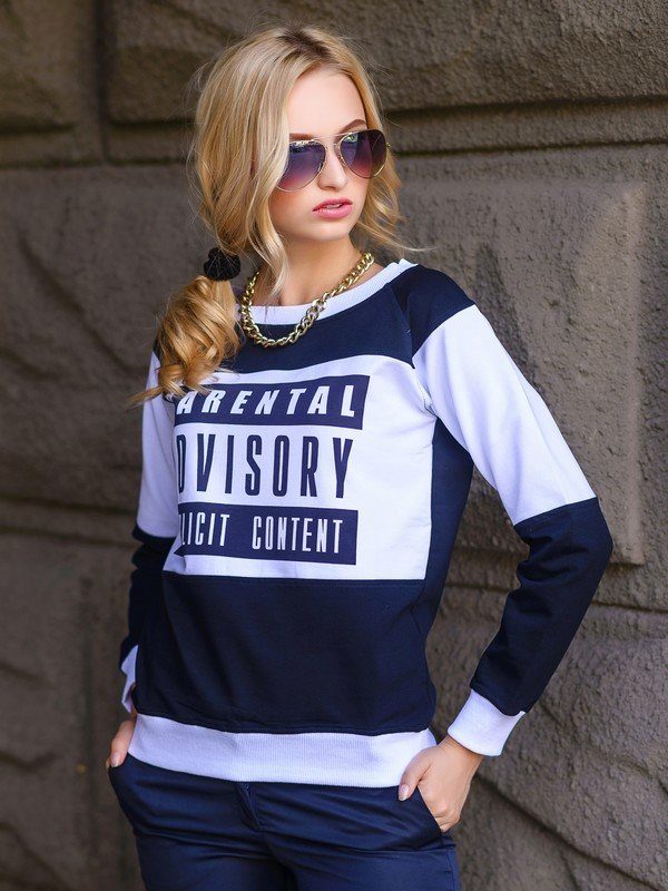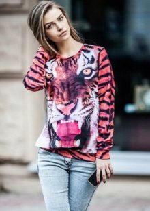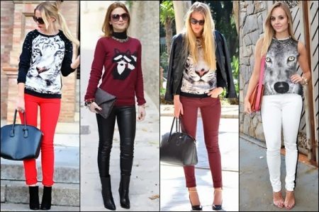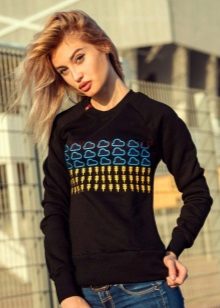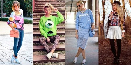 Sweatshirts are both monophonic, and multi-colored or decorated with any prints. Sweatshirts with symbols of prestigious educational institutions, sports teams, as well as models with bright patterns depicting, for example, animals or cartoon characters are in great demand. Popular sweatshirts with a variety of inscriptions and quotations in foreign languages.