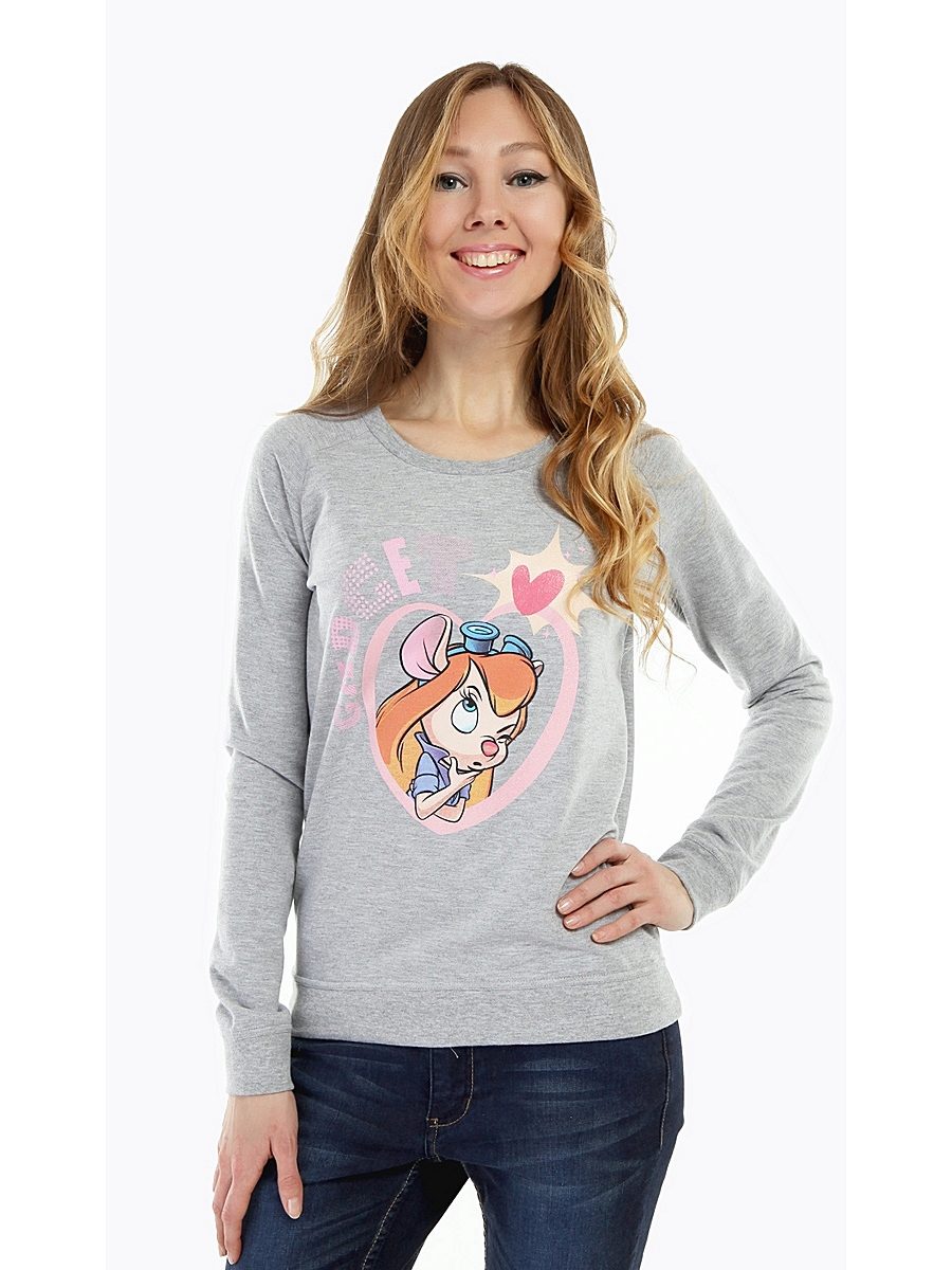 - A funny model from the domestic brand “Yours”: a gray sweatshirt of a classic silhouette is decorated with a large, bright print depicting the characters of a popular cartoon. The product consists of a mixture of cotton and polyester 50/50. Average price - 800 rubles.