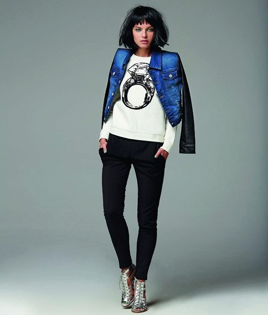 - Youth model from Vero moda: a cropped gray sweatshirt with a modest print. The model is made of 100% blend cotton. The average price is 2,200 rubles.