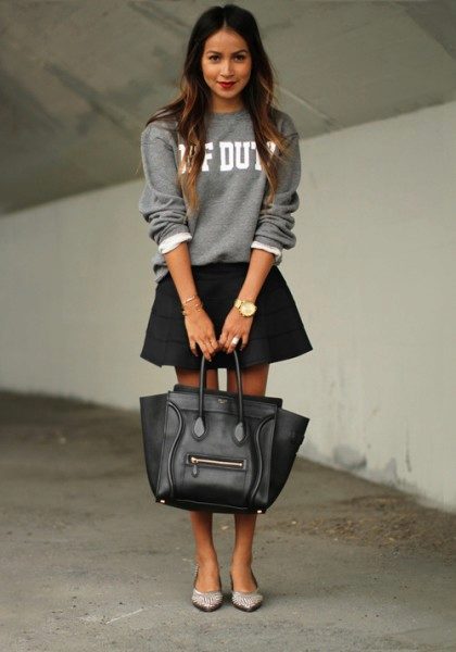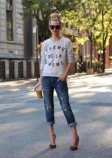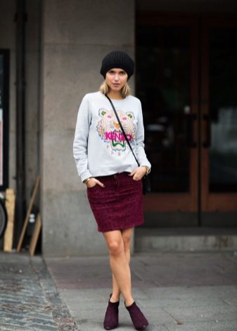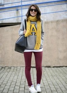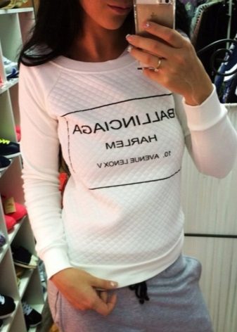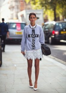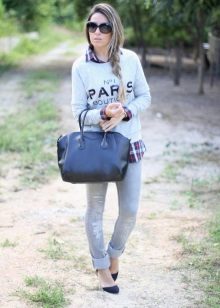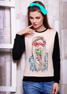 Sweatshirt - still remains an option of sportswear, so you should not combine it with items of clothing of a business wardrobe. Nevertheless, it combines well with skinny trousers and a stylish jacket.