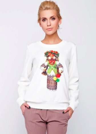 For decoration of a sweatshirt, inscriptions, ornaments, logos, geometric patterns, etc. are used.