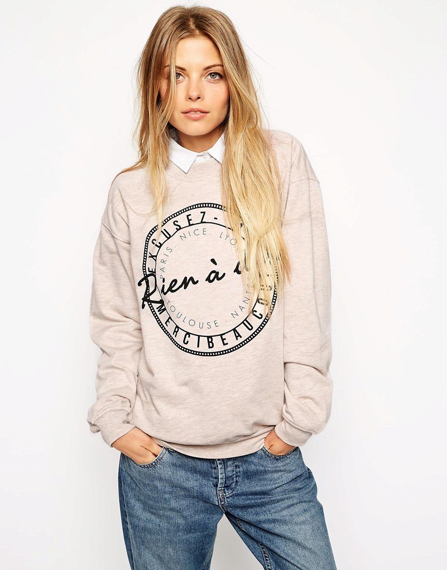 The most popular model is the classic. This sweatshirt is perfect for everyday life. Shortened models of sweatshirts are no less popular than the classic ones. They are perfectly combined with ragged jeans, classic skirts and fashionable trousers.