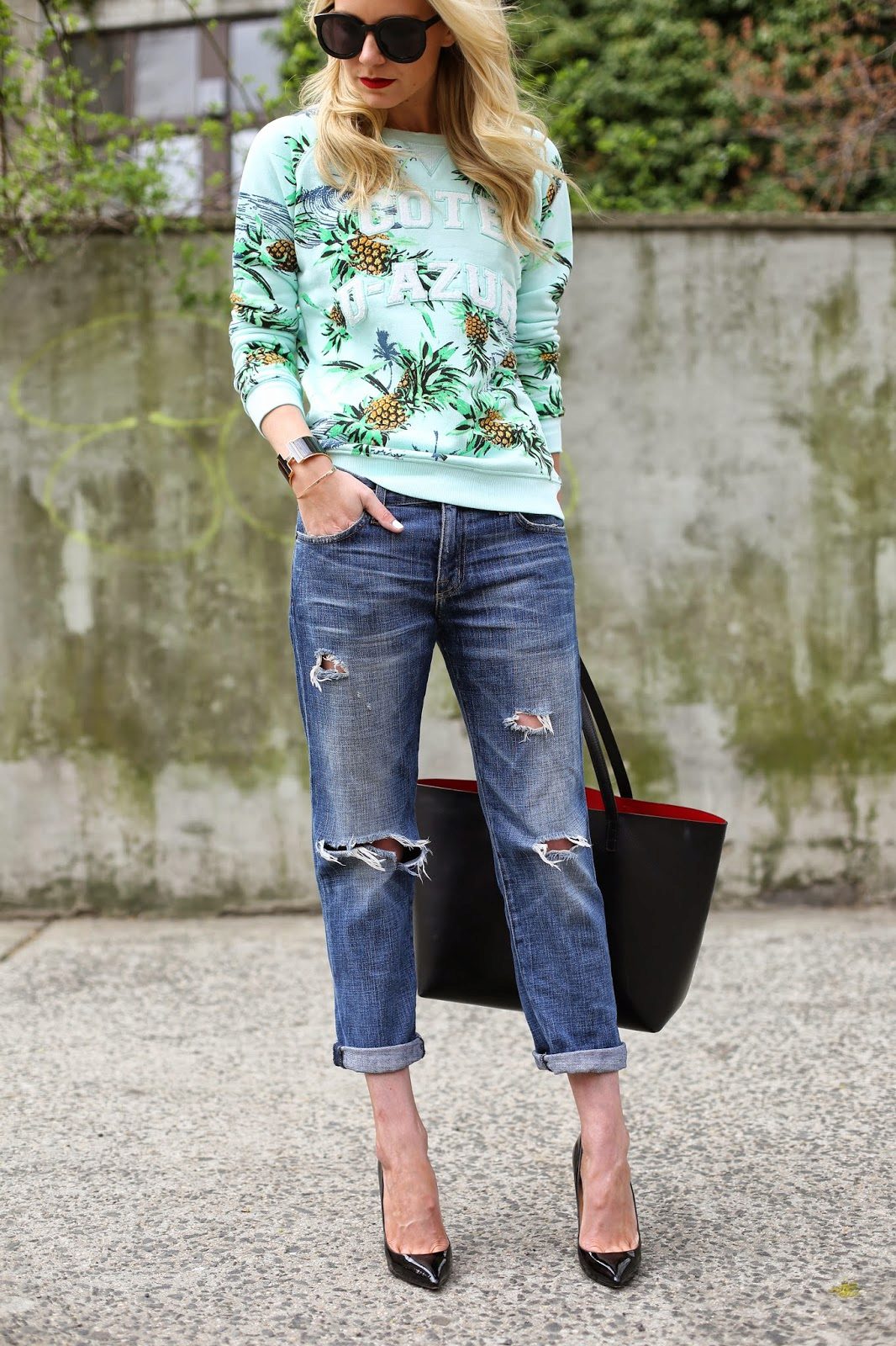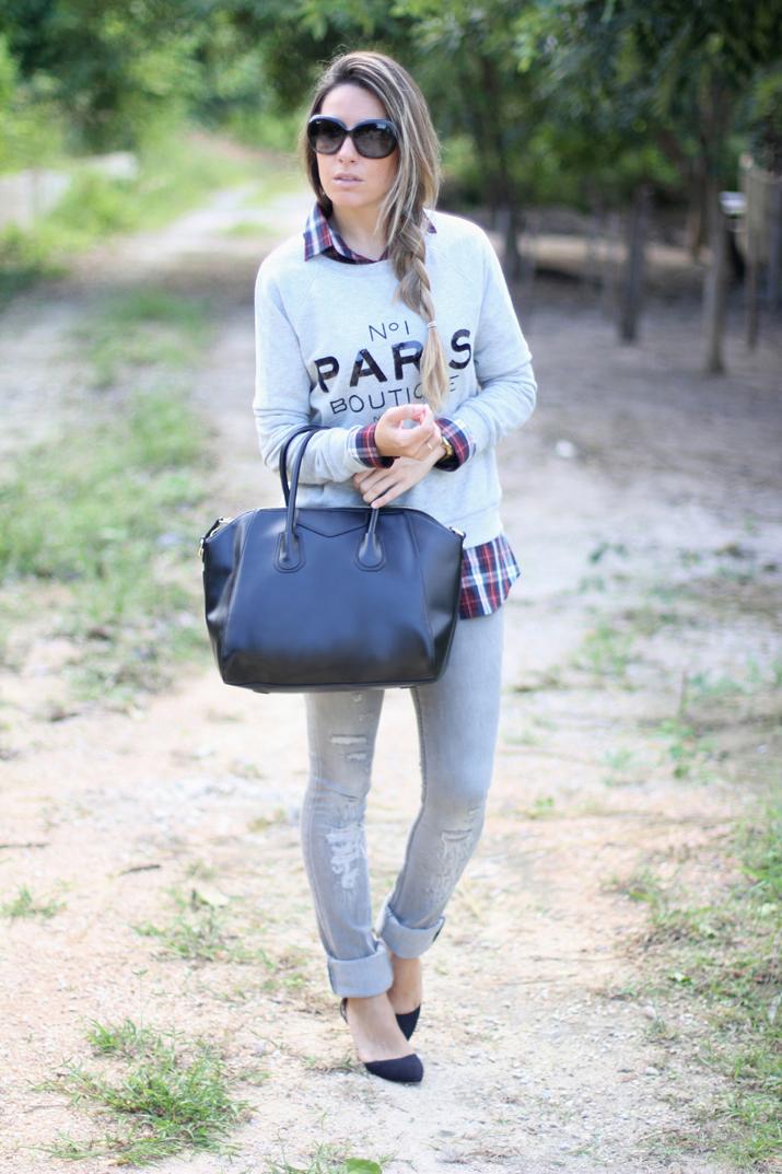 Another interesting combination: a voluminous sweatshirt, cuffed elastic and skinny jeans or denim mini shorts. You can wear wedge sandals or flat shoes on this set.