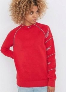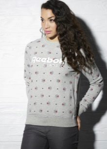 Surprisingly, Reebok sweatshirts are combined with feminine and romantic things, such as airy summer dresses and skirts. A combination of a sweatshirt with a strict narrow skirt or a flying maxi skirt will look very unusual. Footwear for such a dress can be chosen as sports shoes, for example, sneakers or slip-ons, and more elegant ones - classic shoes or elegant sandals.