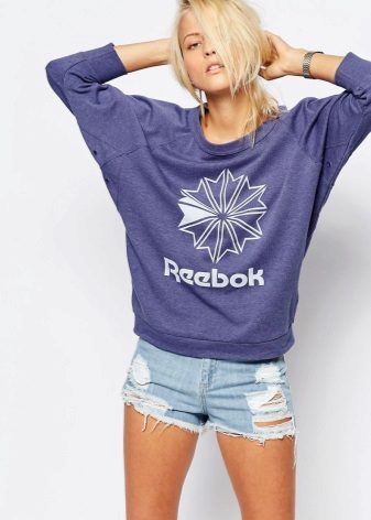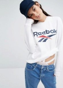 In addition to training pants, leggings and leggings, a pair of Reebok sweatshirts can make up a pair of, for example, your favorite jeans. Since sweatshirts usually have a free silhouette, they are best combined with straight or tapered trousers. In the warm season, instead of trousers, you can wear short shorts - denim or some other material.