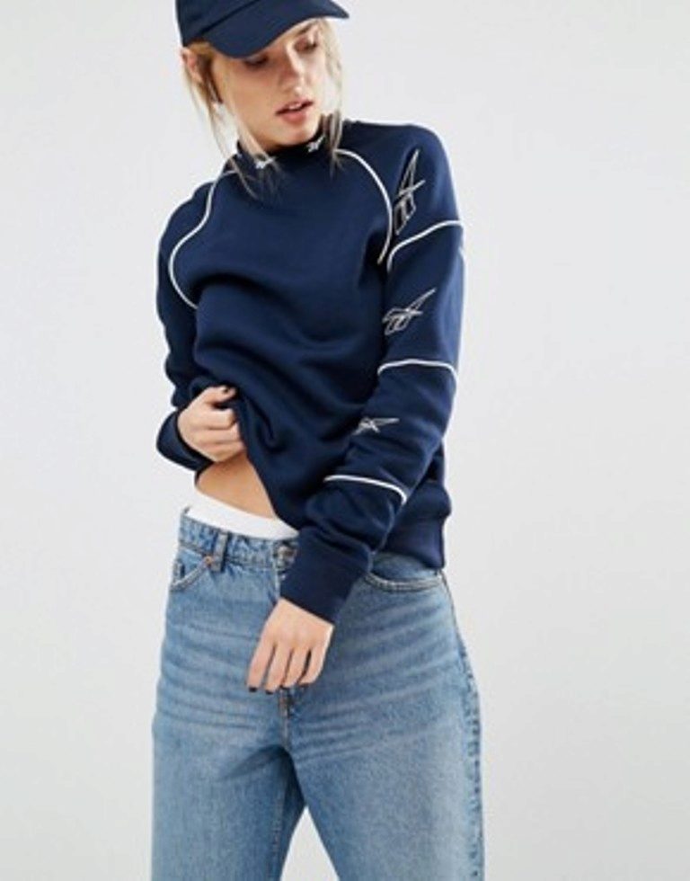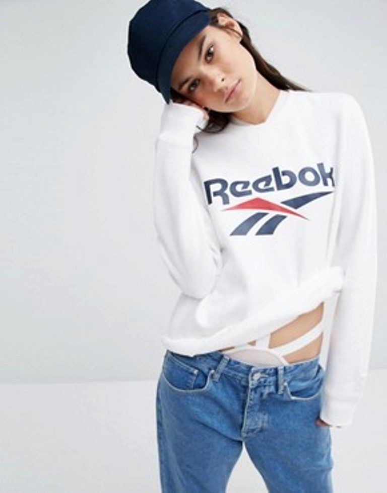 Despite the fact that Reebok sweatshirts belong to the category of sportswear, you can combine them with a variety of things from your wardrobe.