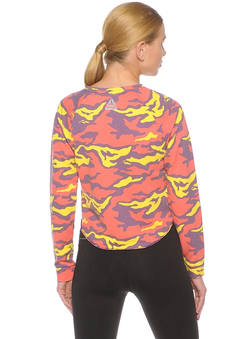 - Women's colorful sweatshirt. A cropped silhouette and loose fit provide maximum comfort during workouts. The composition of the model is a blended fabric based on polyester and viscose.