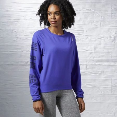 - Women's sweatshirt saturated purple. The effective, bright model is sewed from the synthetic material created on special technology. During physical exertion, it removes excess moisture, so that the skin remains dry.