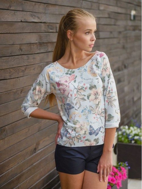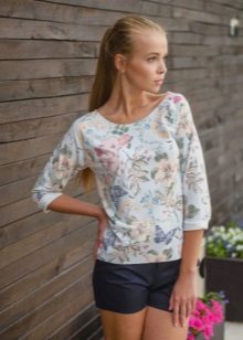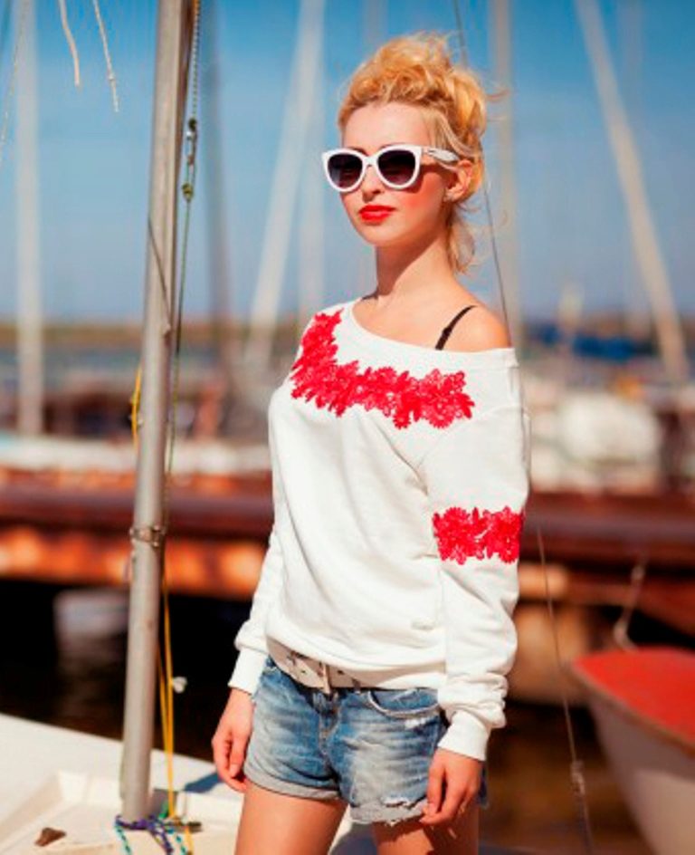 - The combination of a shortened sweatshirt with shorts, which can be either knit or denim, looks original.