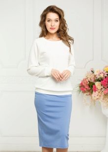 Monochrome sweatshirts can be worn with skirts. Slender girls with beautiful legs prefer mini length models, but floor-length skirts are perfect for women with curvaceous shapes. Often, the fair sex combine a single sweatshirt with a leather skirt. Top of white color in combination with a skirt of gentle color looks beautiful.