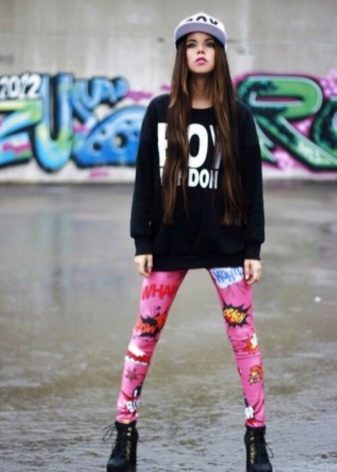 - An elongated sweatshirt is better to wear with lossins and not with tights, so that the image does not look vulgar.