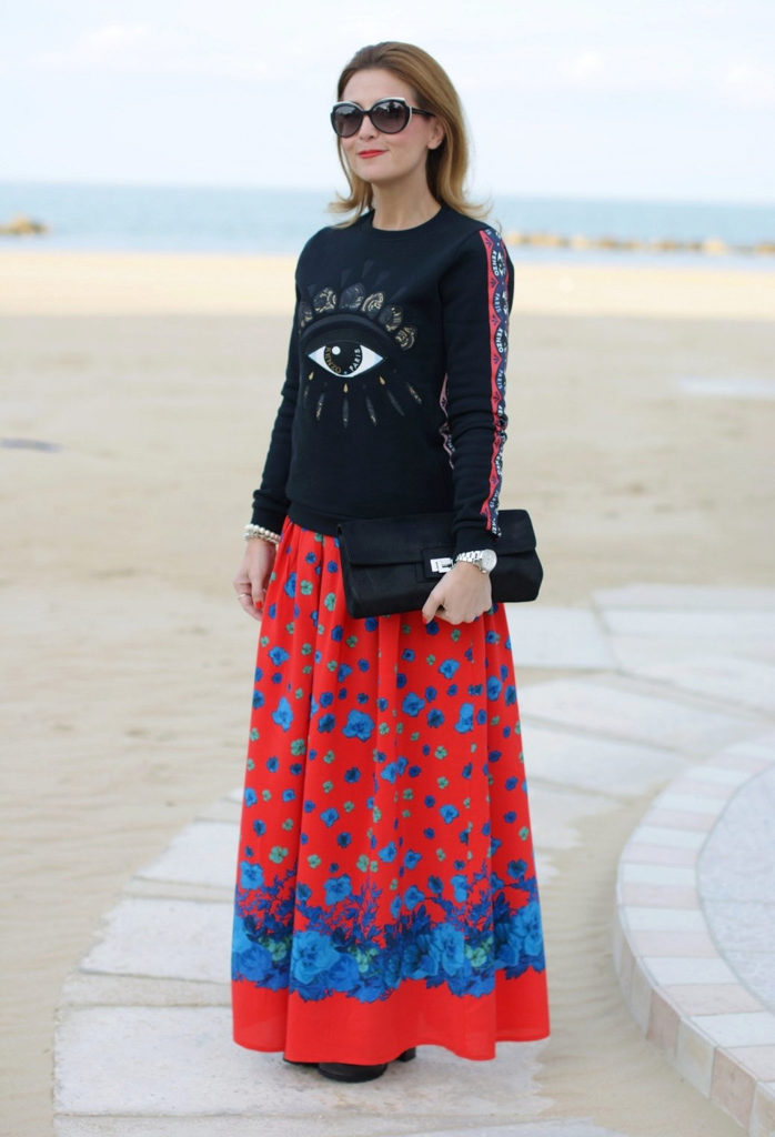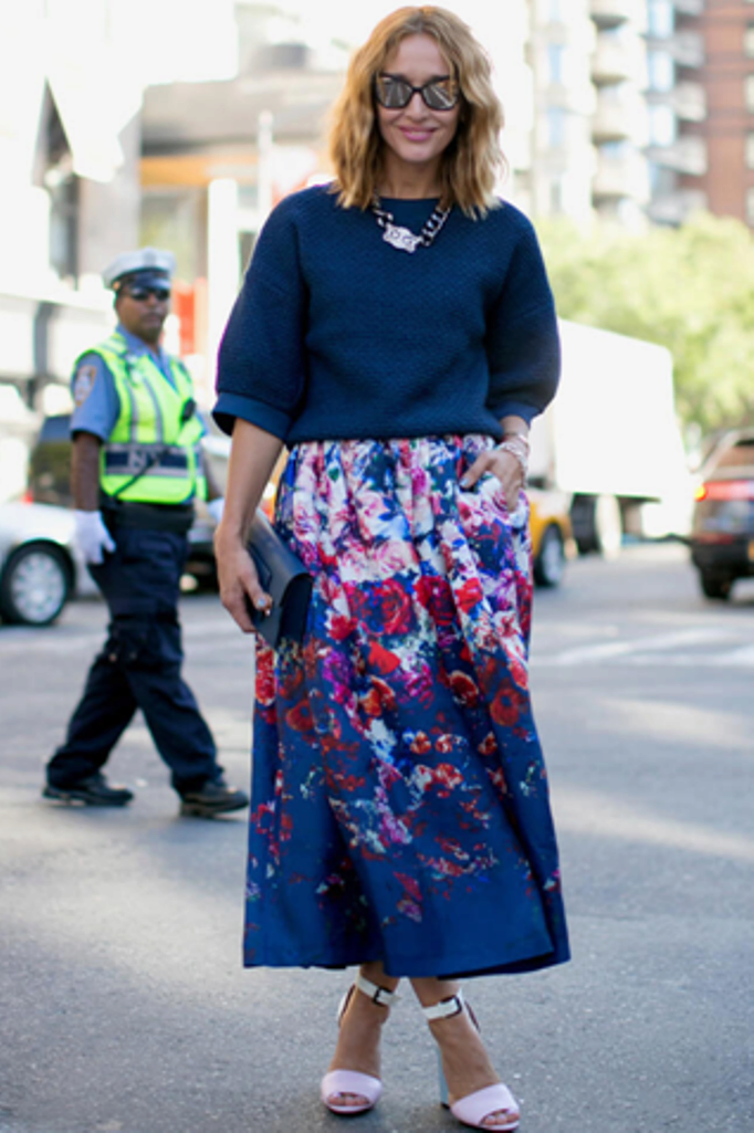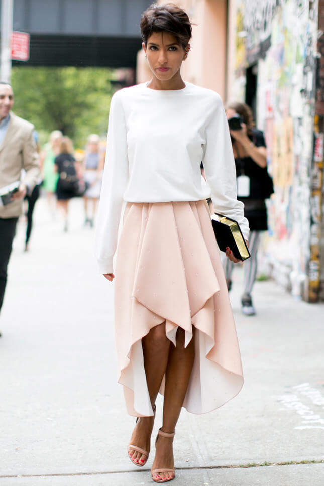 - A puffy or flared skirt perfectly combines with a short top. Some ladies prefer skirts length maxi. This image is feminine and attractive.