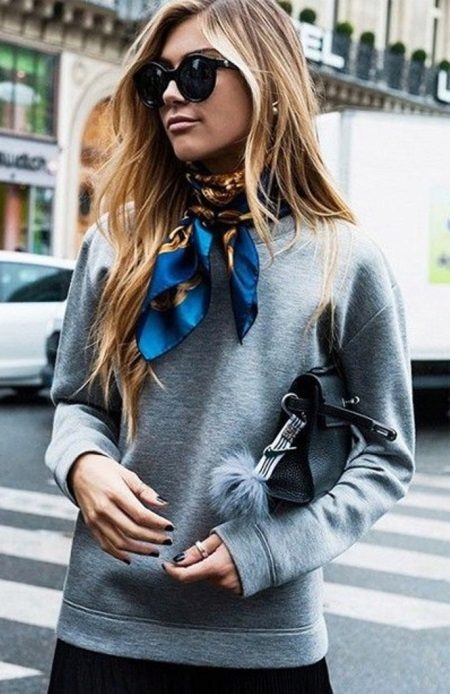 With a plain top it is worth wearing a scarf or a scarf. An excellent choice is an accessory made of silk. He adds color to the image and makes the image creative and unusual.
