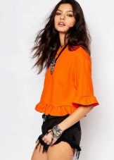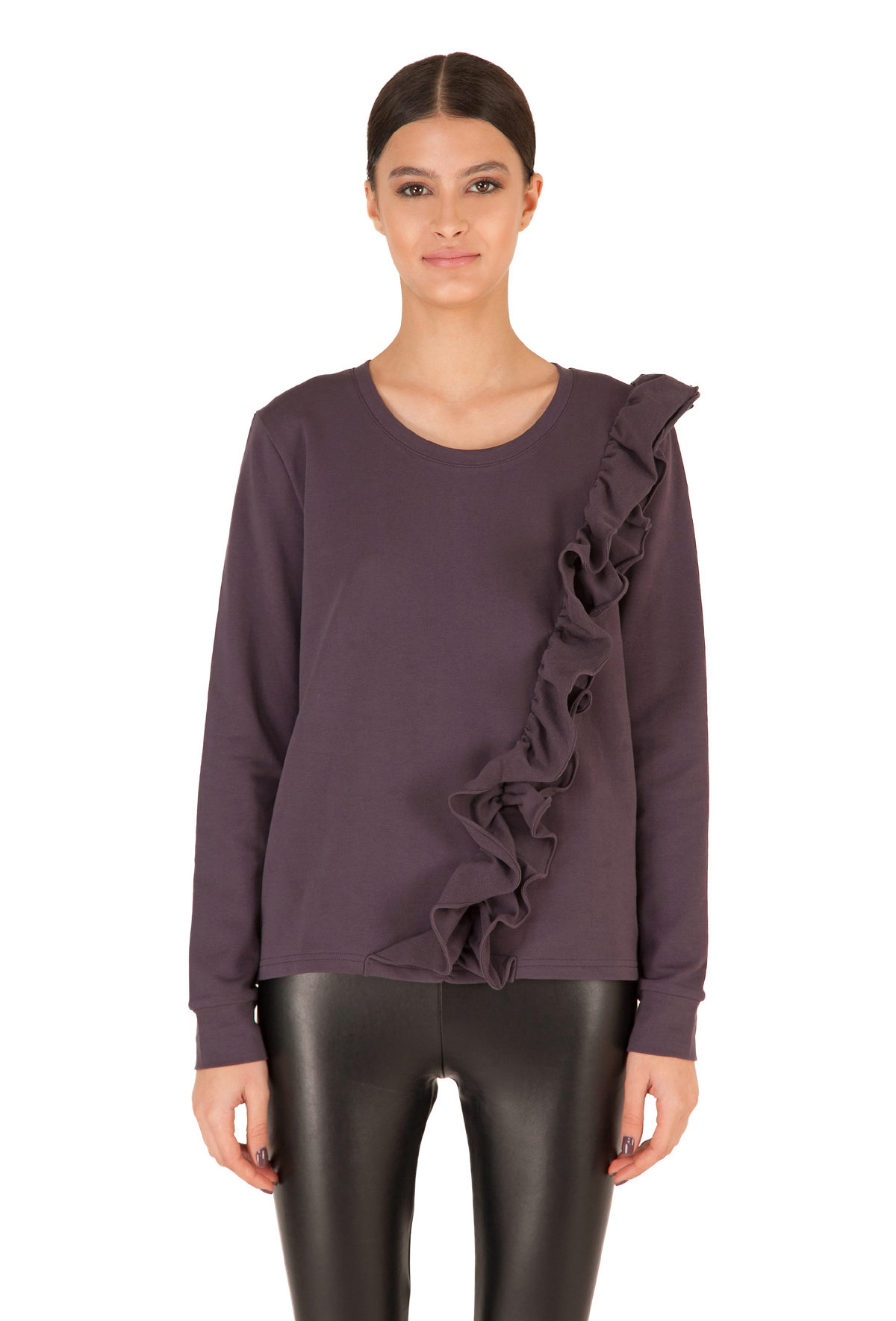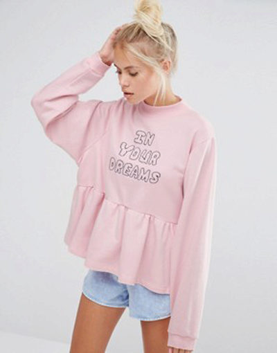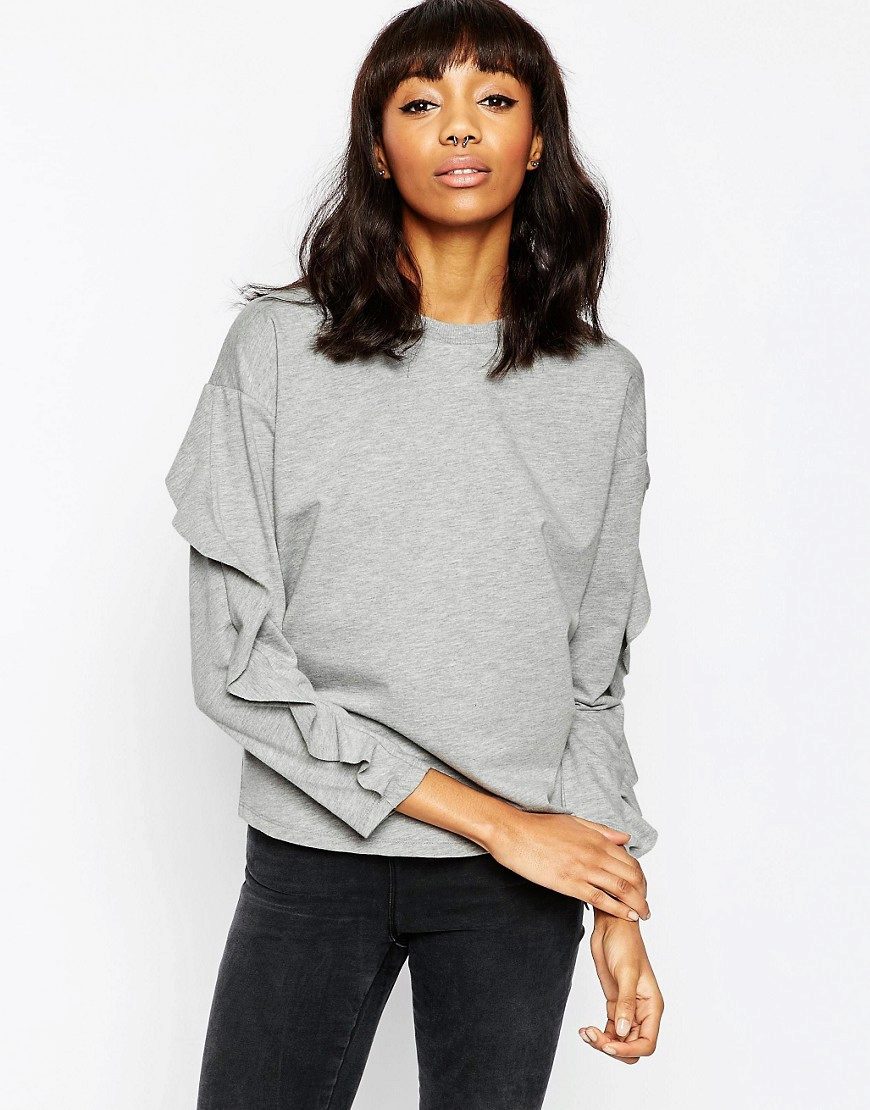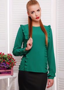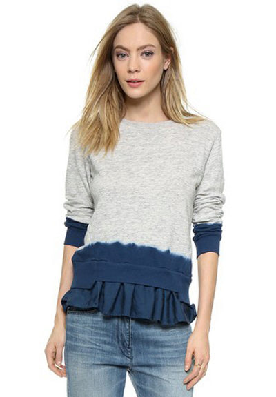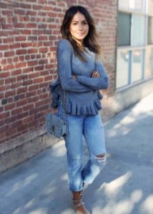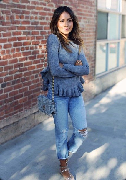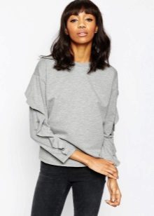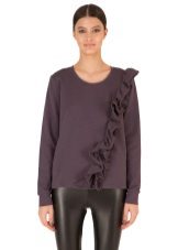 Since the sweatshirts with frills look very elegant, you can try to combine it with different models of a pencil skirt and create an image suitable even for a festive occasion.