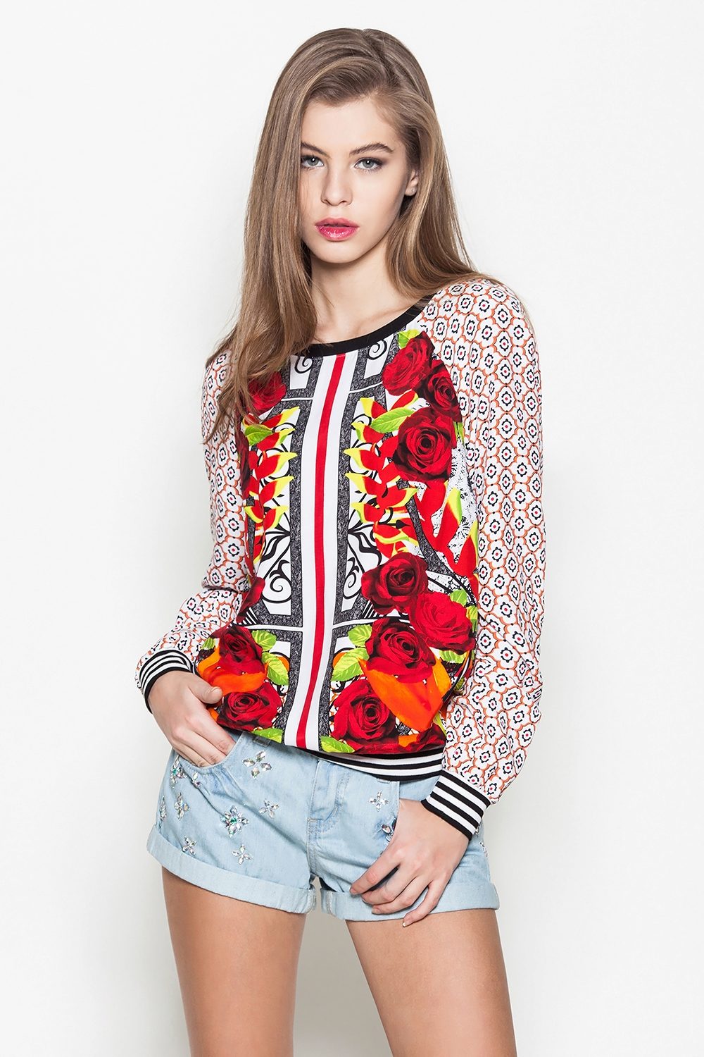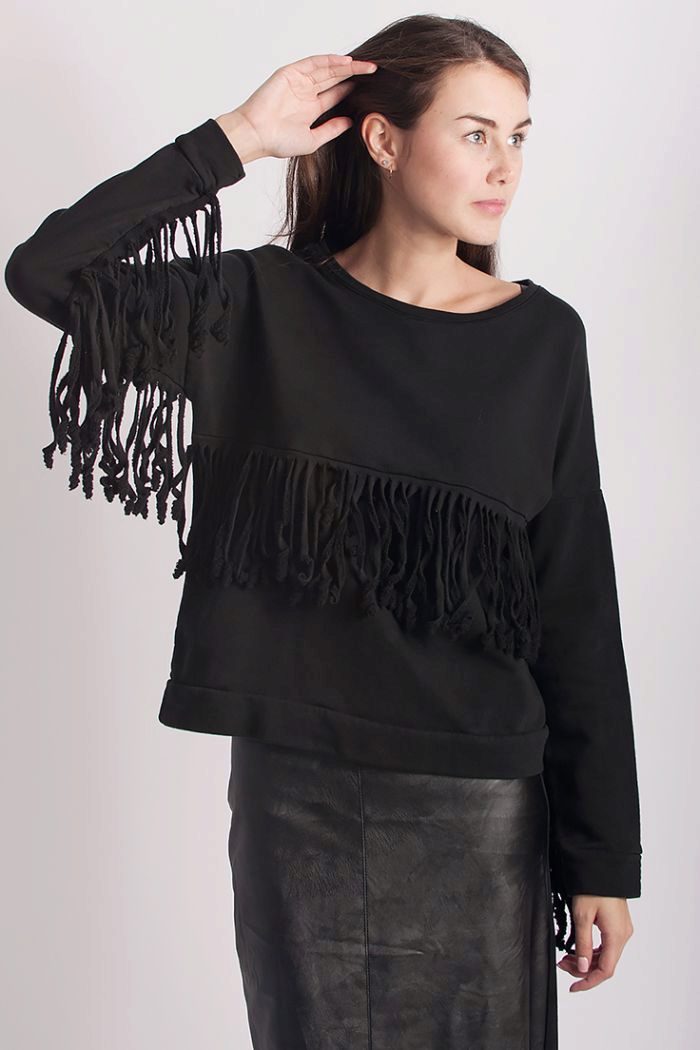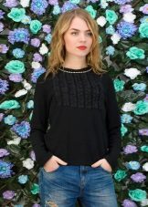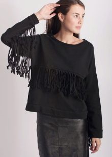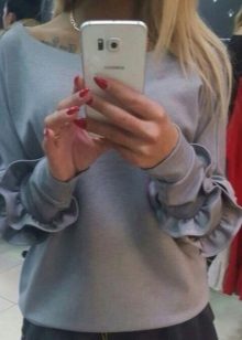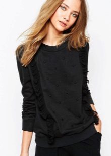 In addition to the frills, sweatshirts are often decorated with various elements in the form of beads, chains, lace inserts, any stripes, small chains and much more.