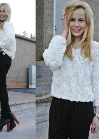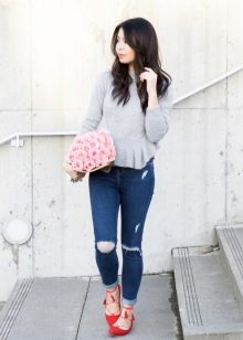 As for shoes, you can use absolutely any option, since the sweatshirt is not capricious in combination with other things, even with decorative frills.