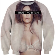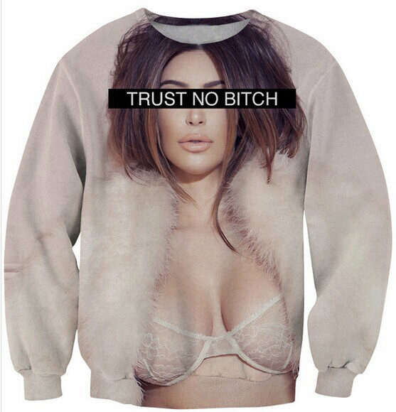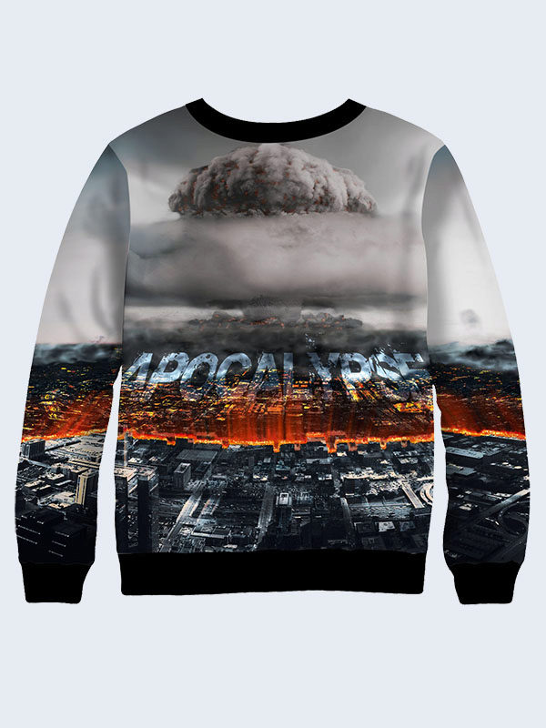 Bright personalities can decorate your image with a sweatshirt with a picture of an explosion of a bomb or a bullet in flight. Three-dimensional image looks spectacular, but note that when worn there may be distortion on the folds.