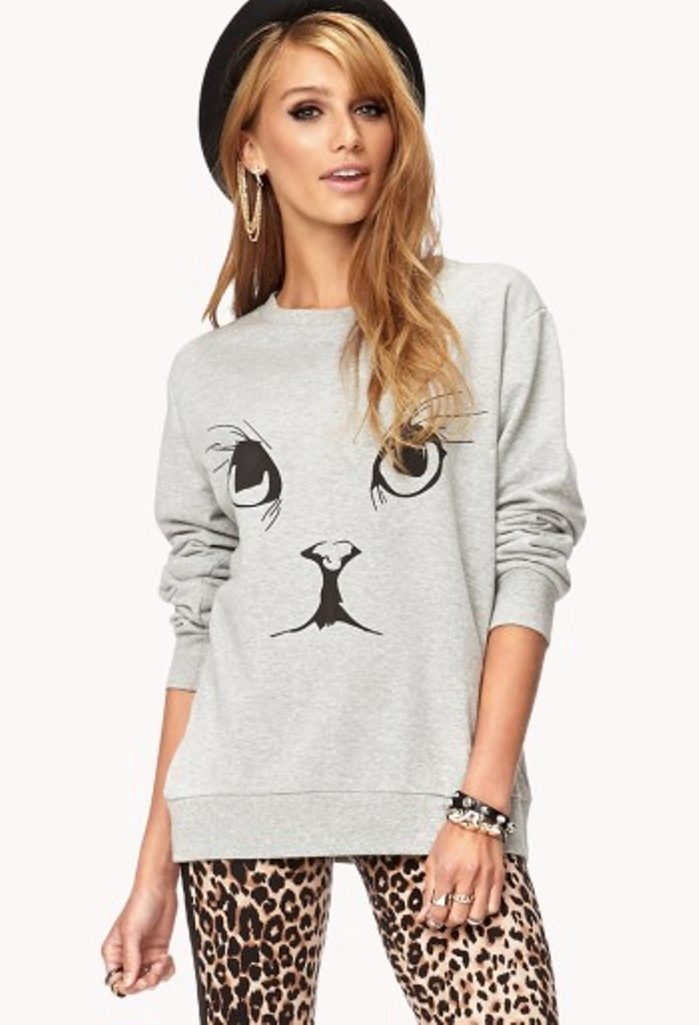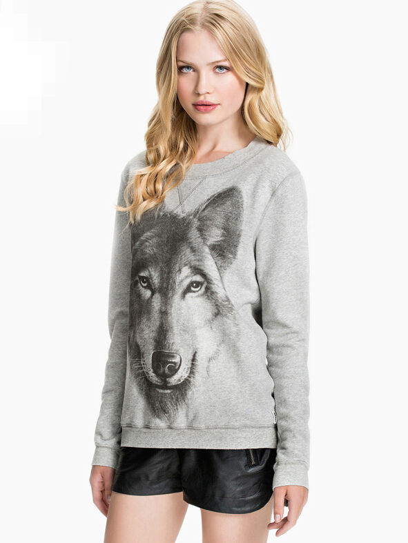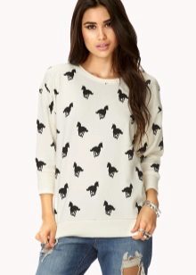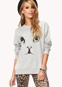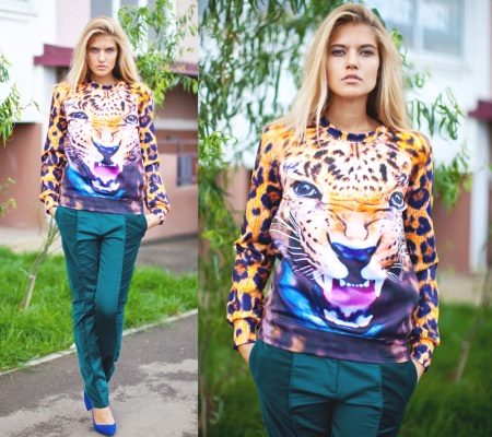 Kenzo offers a sweatshirt model with a tiger, and the designer Givenchy used the image of a rottweiler in the latest collection. Many brands also often use animalistic themes. For example, Vera Moda offers a sweatshirt with a ferocious leopard, and Wildfox, on the contrary, preferred a cute kitten.