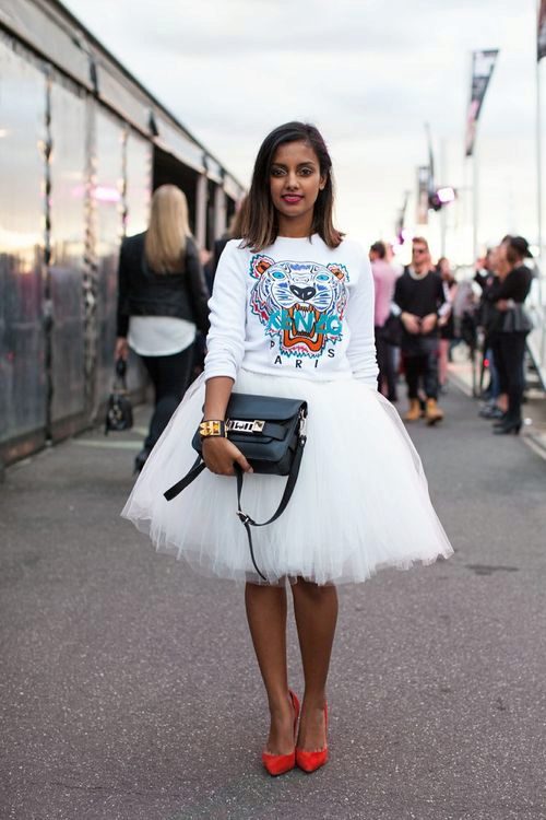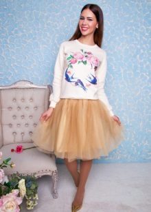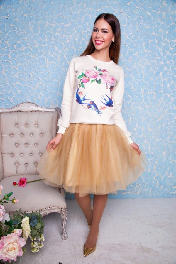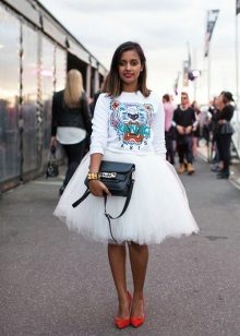 Bright personalities prefer translucent or transparent skirts. Also look great in an ensemble with a bright sweatshirt skirt asymmetrical cut and fur top.