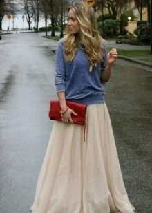 Many ladies prefer skirts length maxi. For a romantic bow, you should wear a pleated skirt or a multi-tiered model of light, flying fabrics. For a casual look, wear jeans or pants.