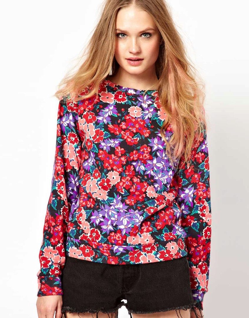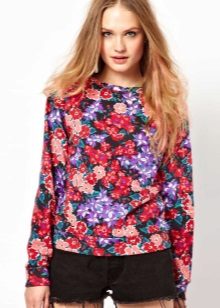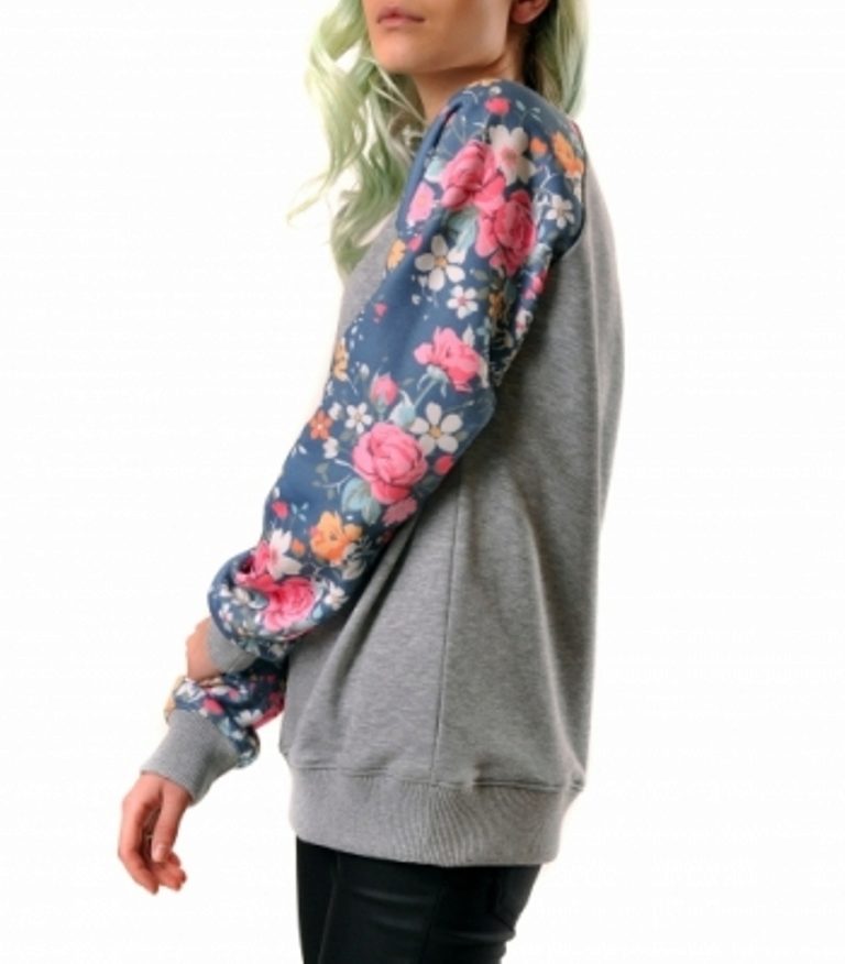 The sweatshirt can be decorated with completely luxurious flowers, but there are also models where the floral print is used only on the sleeves, with the background being pastel colors.