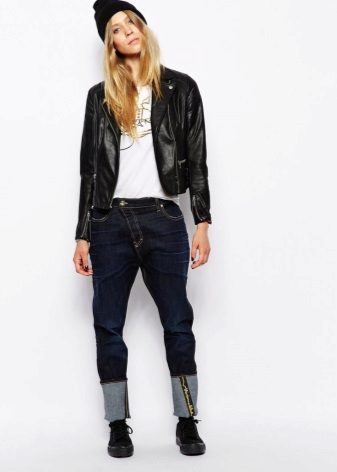 Long models on a wide elastic yoke can be worn with different styles of narrow jeans. To create an image in the style of vintage or retro, it is enough to choose expressive shoes. For example, a great addition would be shoes or boots on the platform.