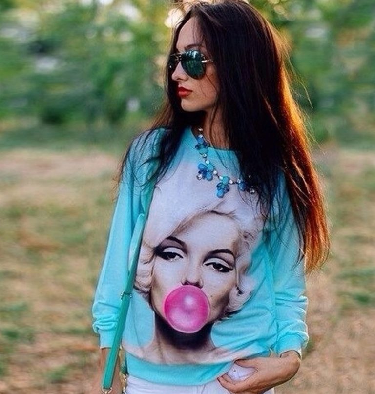 A sweatshirt with Merlin Monroe will help to embody a feminine, gentle and romantic bow.