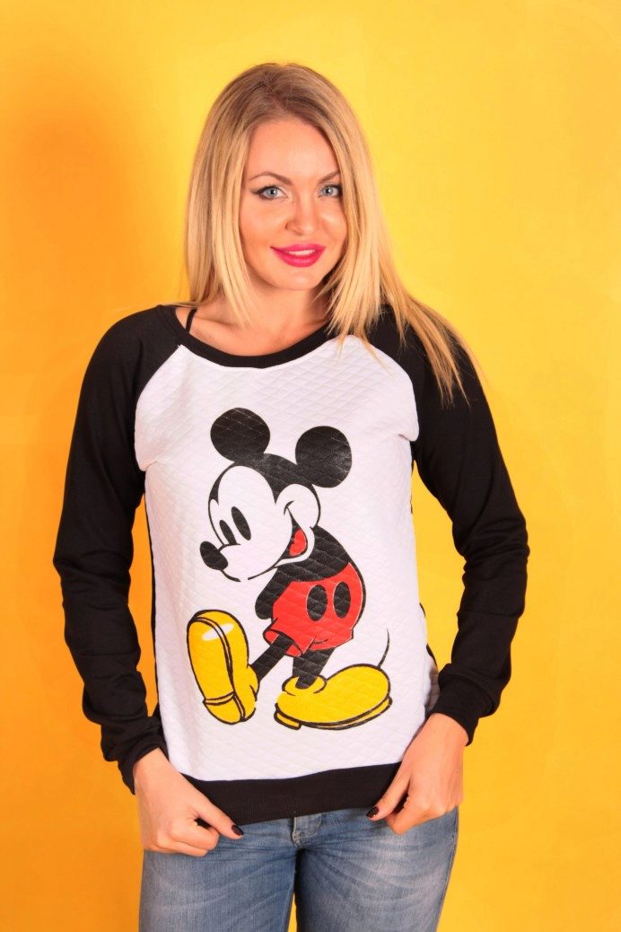 Today, Mickey Mouse on a sweatshirt trend. This cartoon character has already become a favorite classic. Such a sweater will perfectly cheer up even in bad weather. Favorite characters Tom and Jerry also often adorn stylish sweatshirts. In the trend of the model with the Sims and Minions.